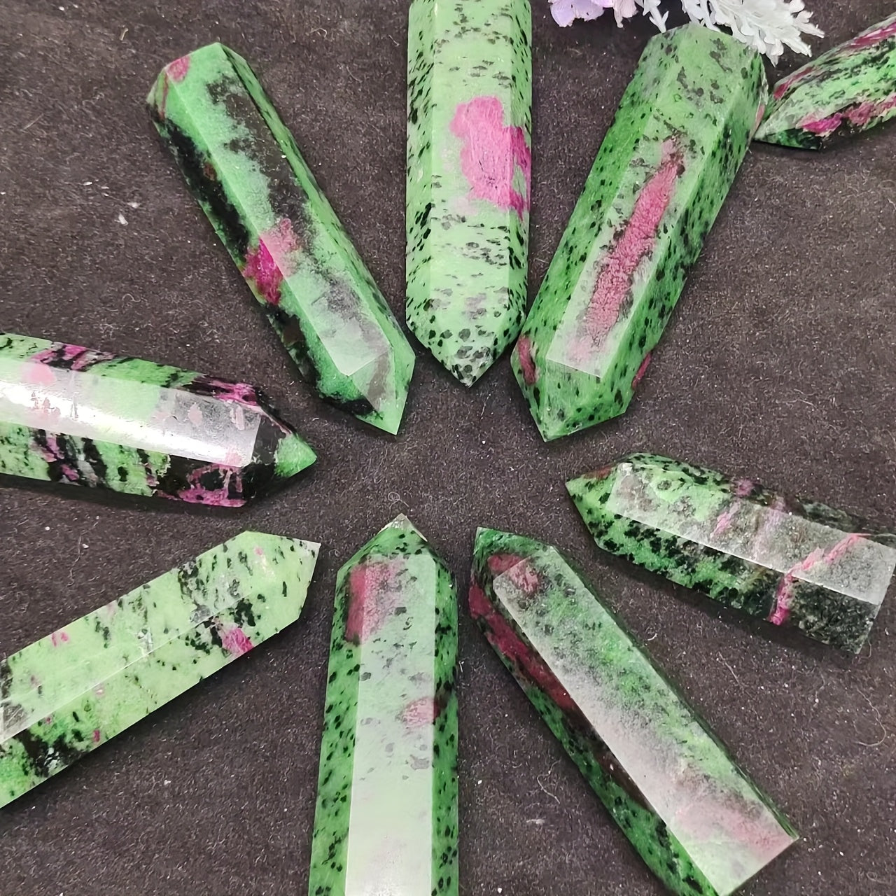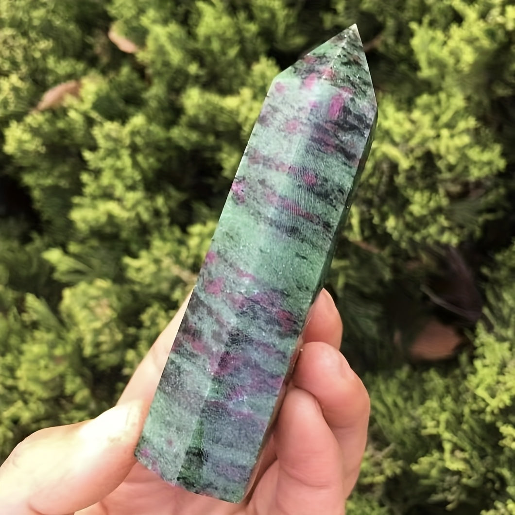 Add a mystical touch to your space with this Zoisite Tower UV Reactive Crystal. Its high crystal point design and UV reactive properties make it a unique and enchanting addition to your crystal collection.