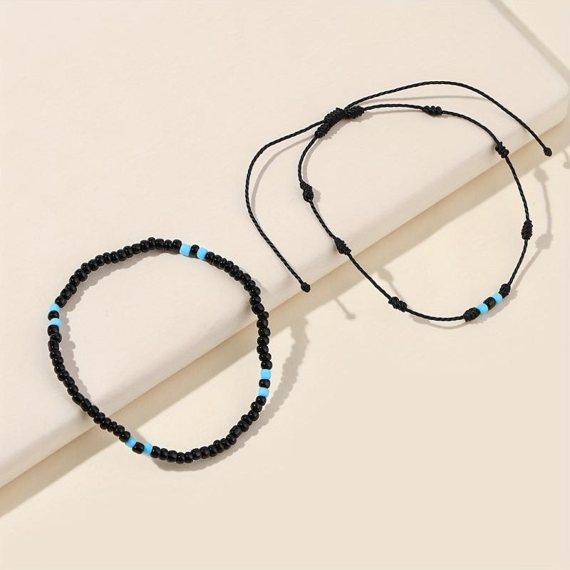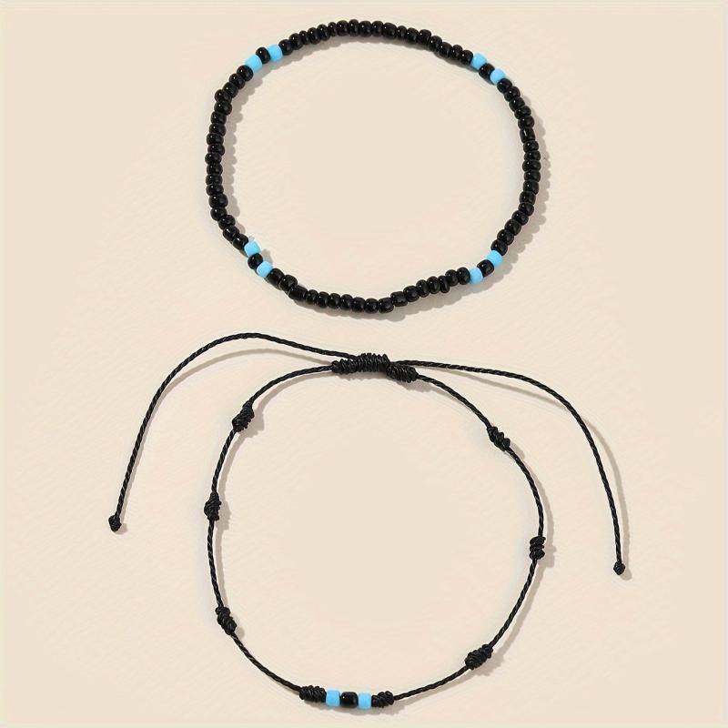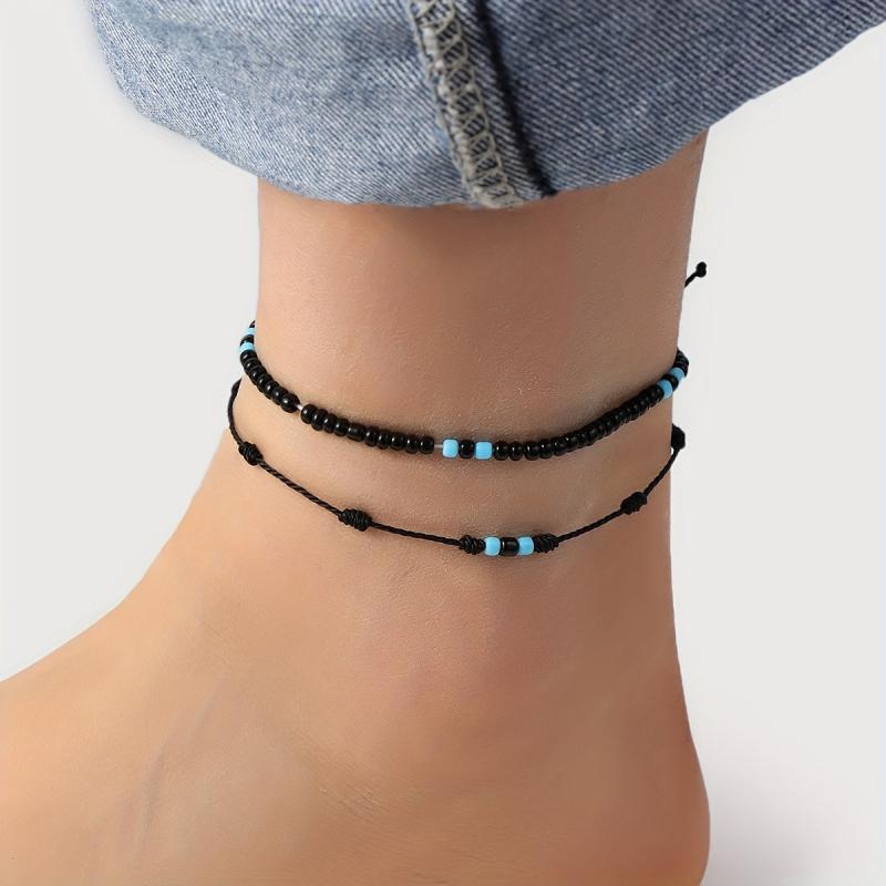 Elevate your style with this handcrafted woven anklet set featuring glass beads. Suitable for daily wear or party occasions, these anklets are versatile and perfect for all seasons.
