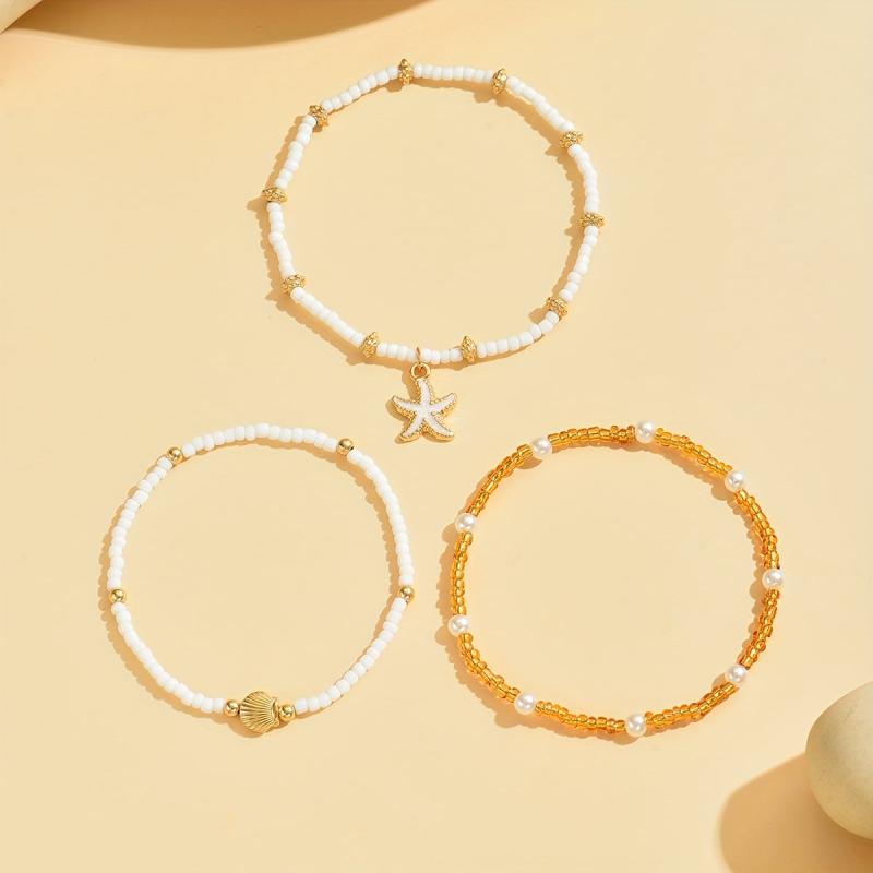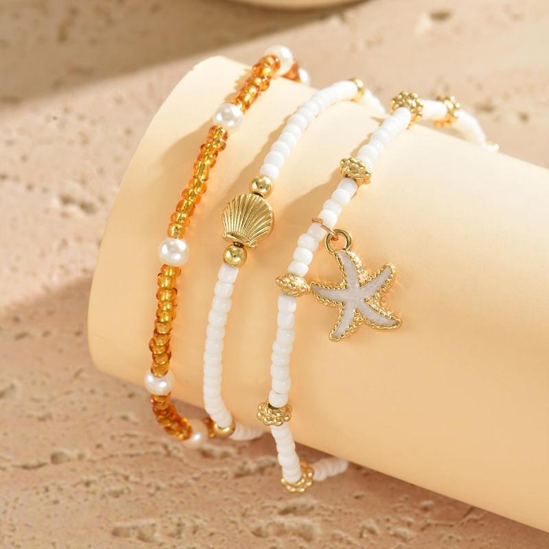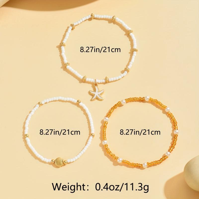 Elevate your beach look with these boho ankle bracelets featuring seashells and starfish. Perfect for summer vacations and parties, these stretchy beaded accessories add a touch of charm.