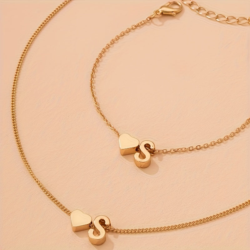 Beautiful set of minimalist charm peach heart jewelry featuring all 26 alphabet letters. Perfect gift for women.