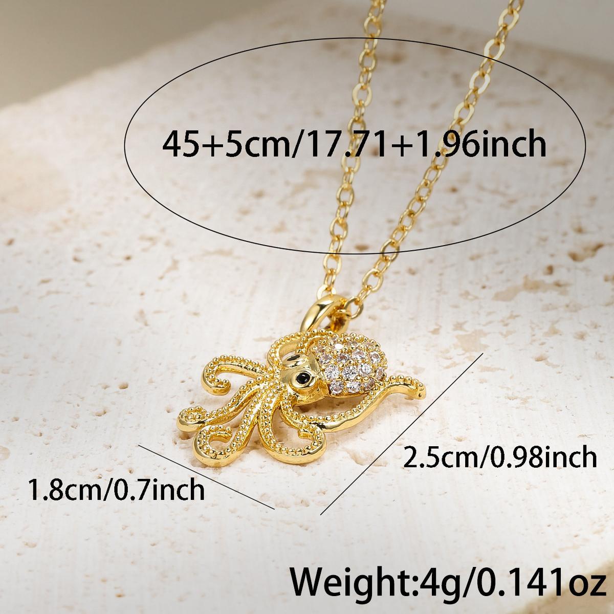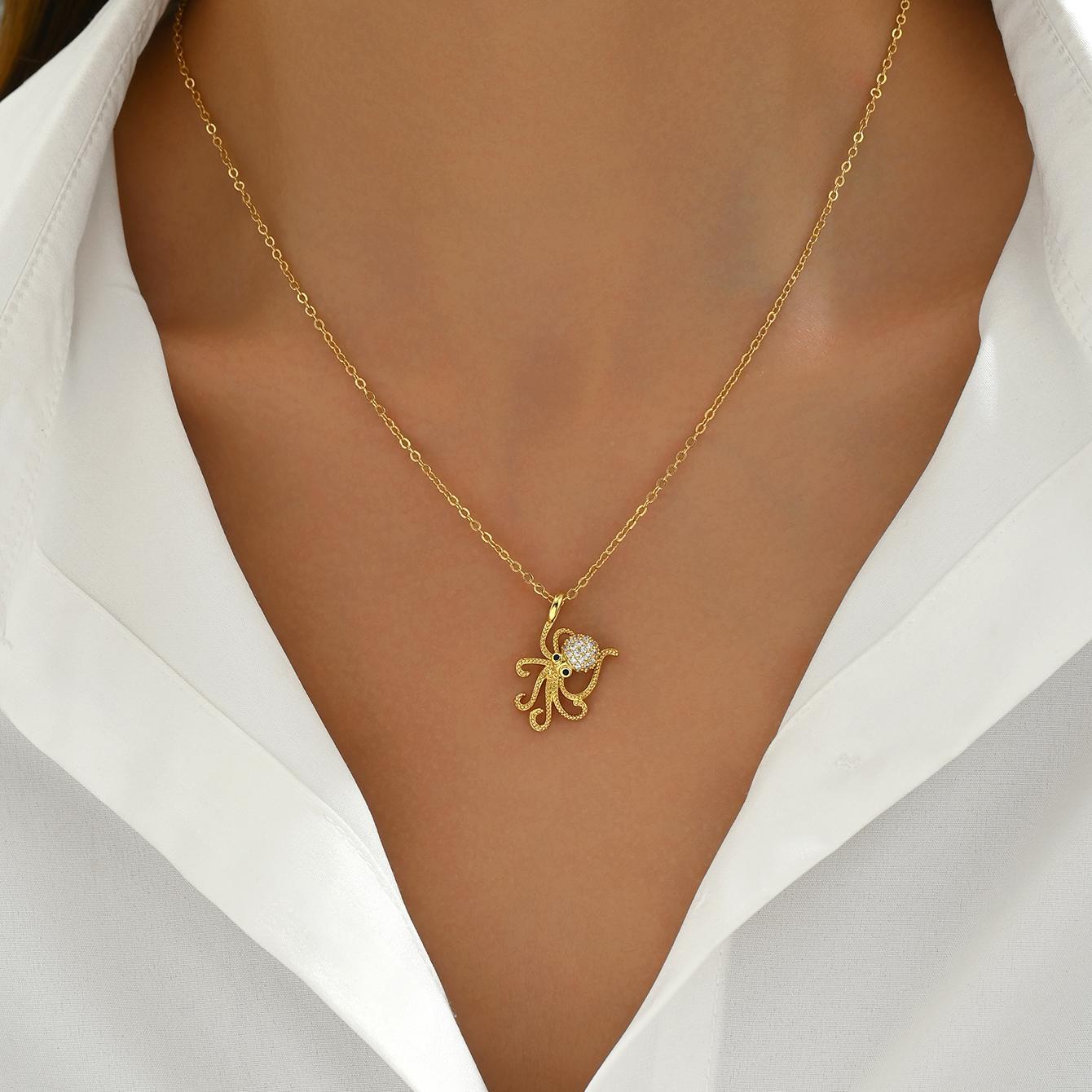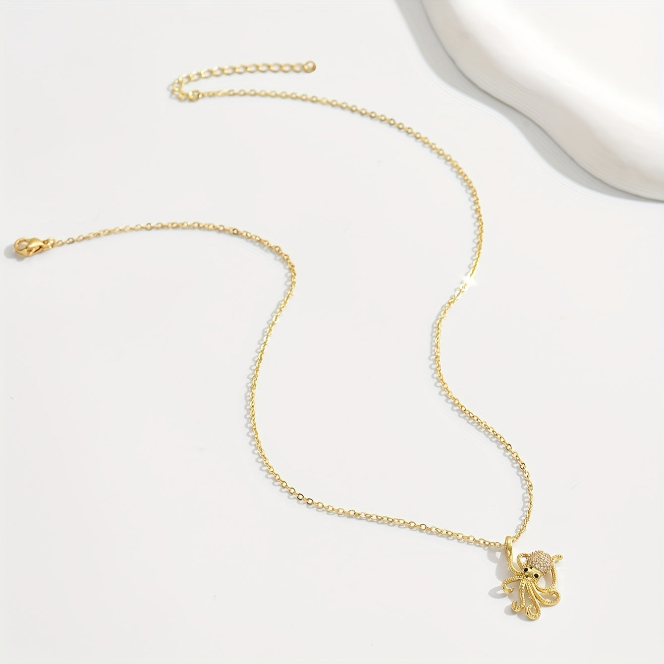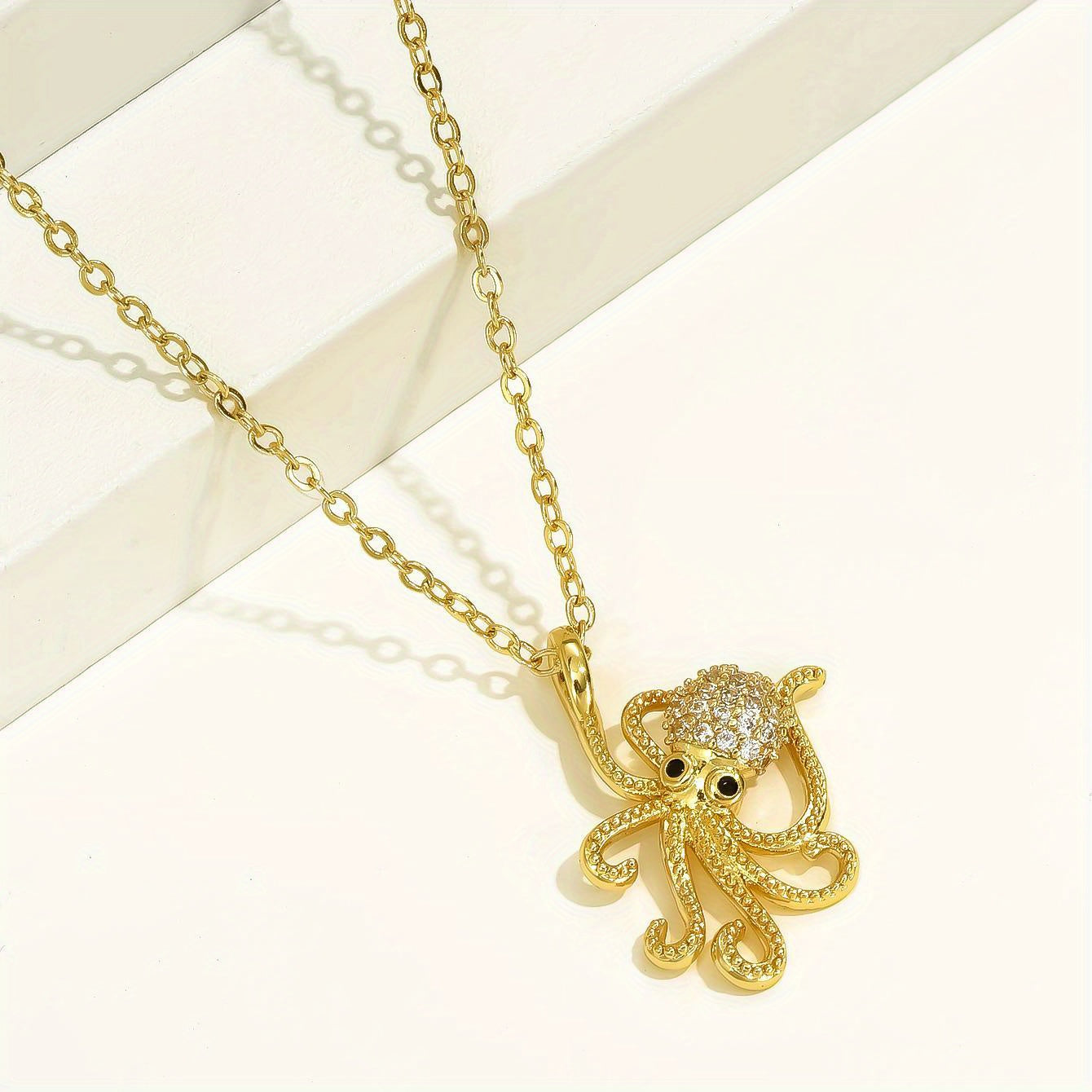 Elevate your casual attire with this exquisite octopus pendant necklace featuring synthetic zirconia stones. The golden tone adds a touch of elegance, making it a perfect accessory for everyday wear.