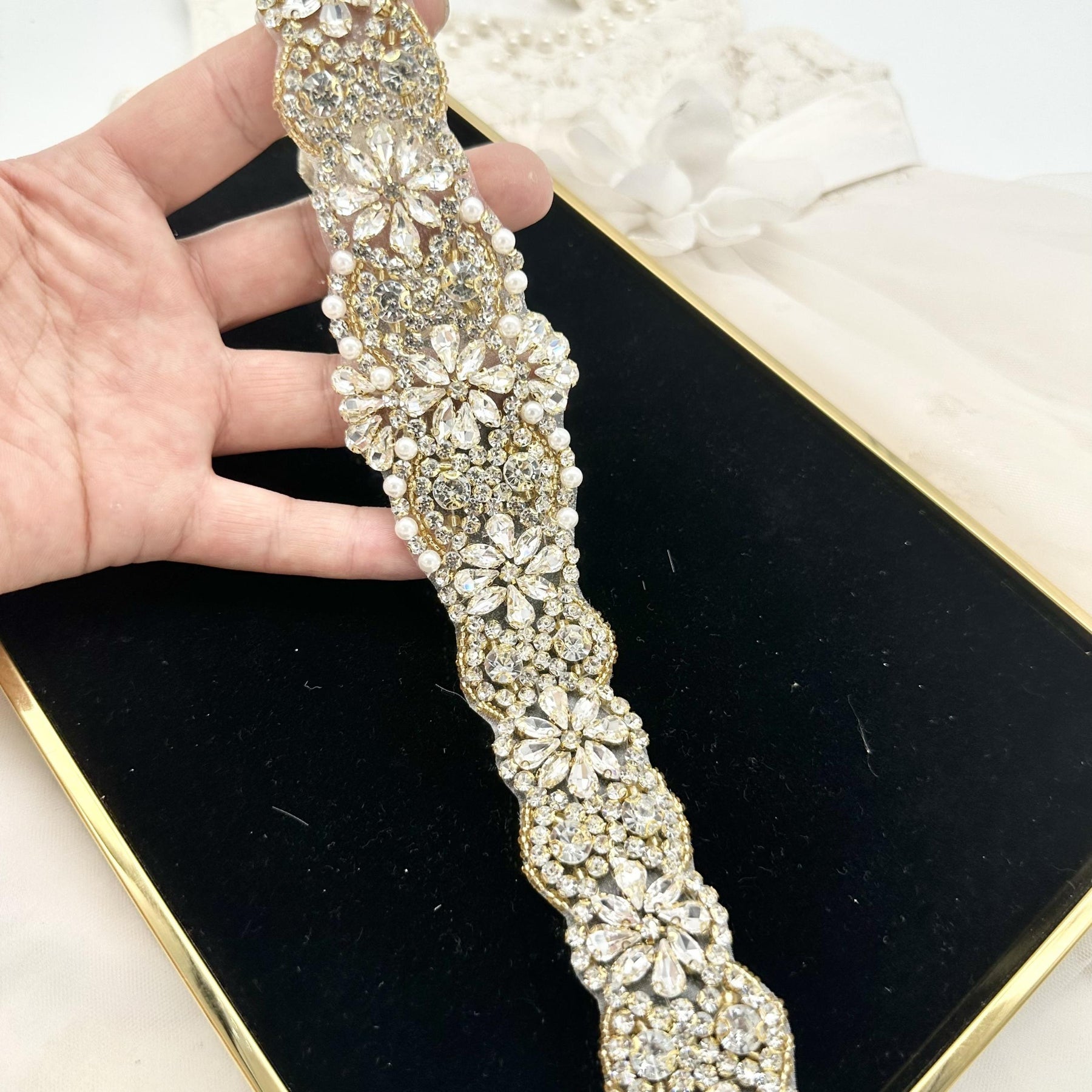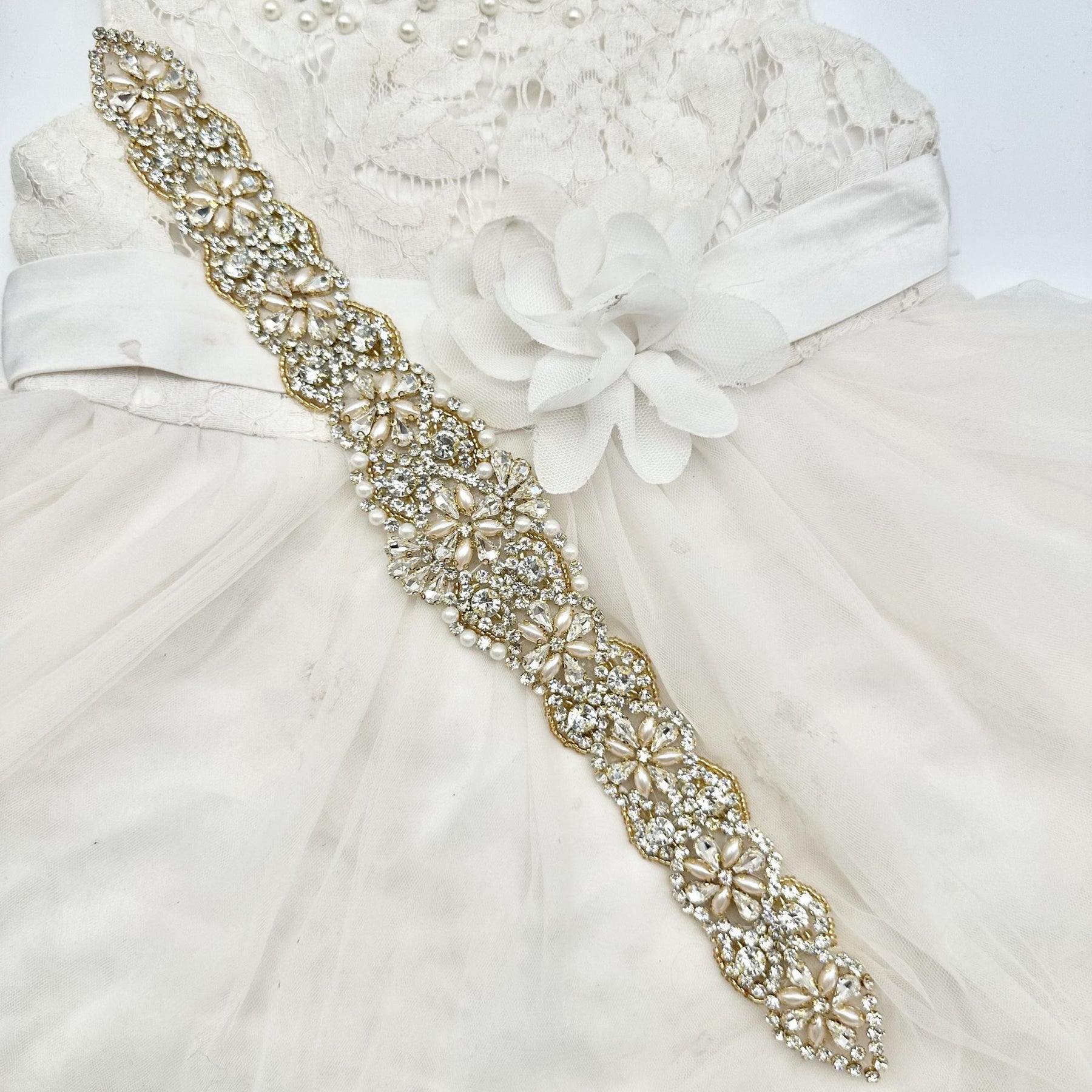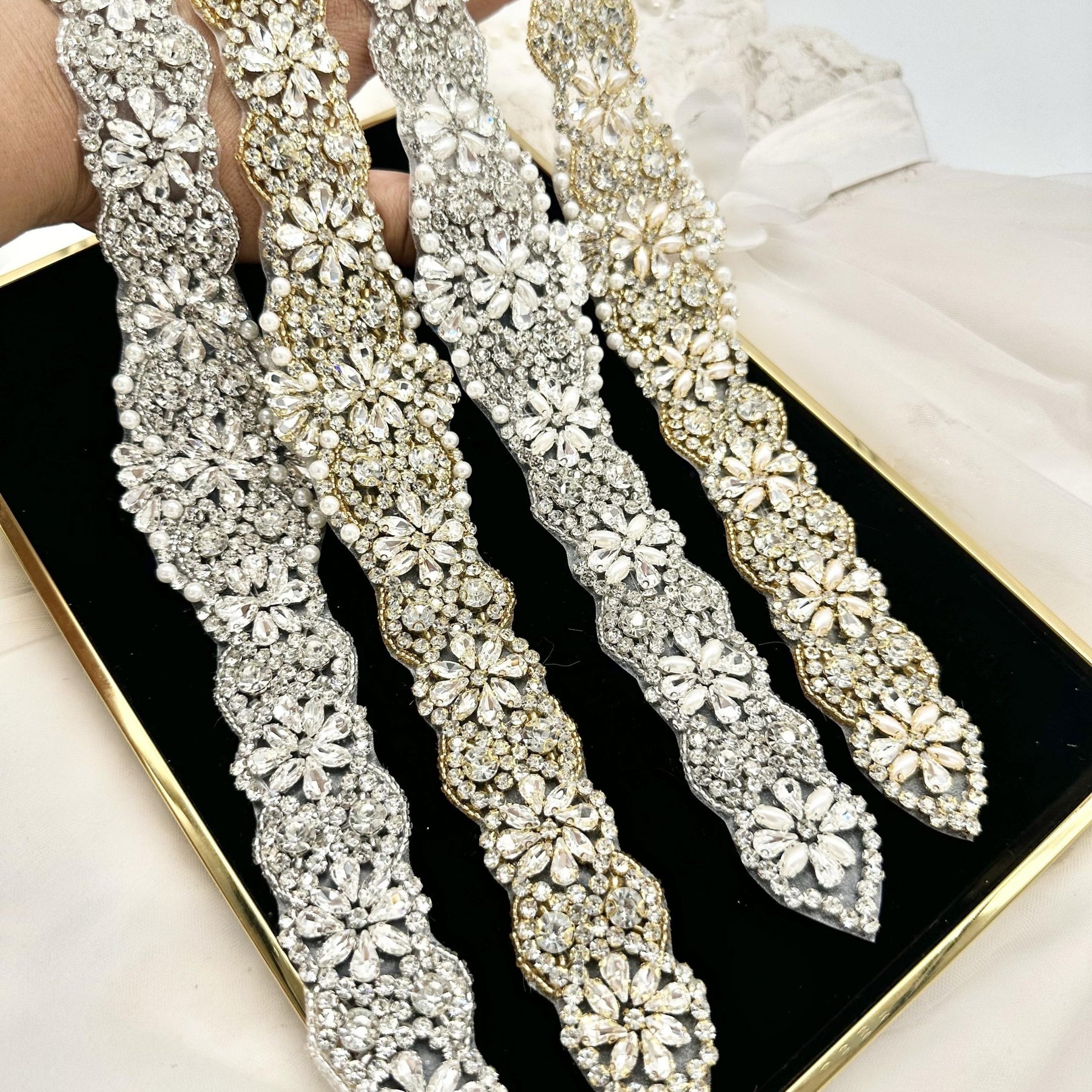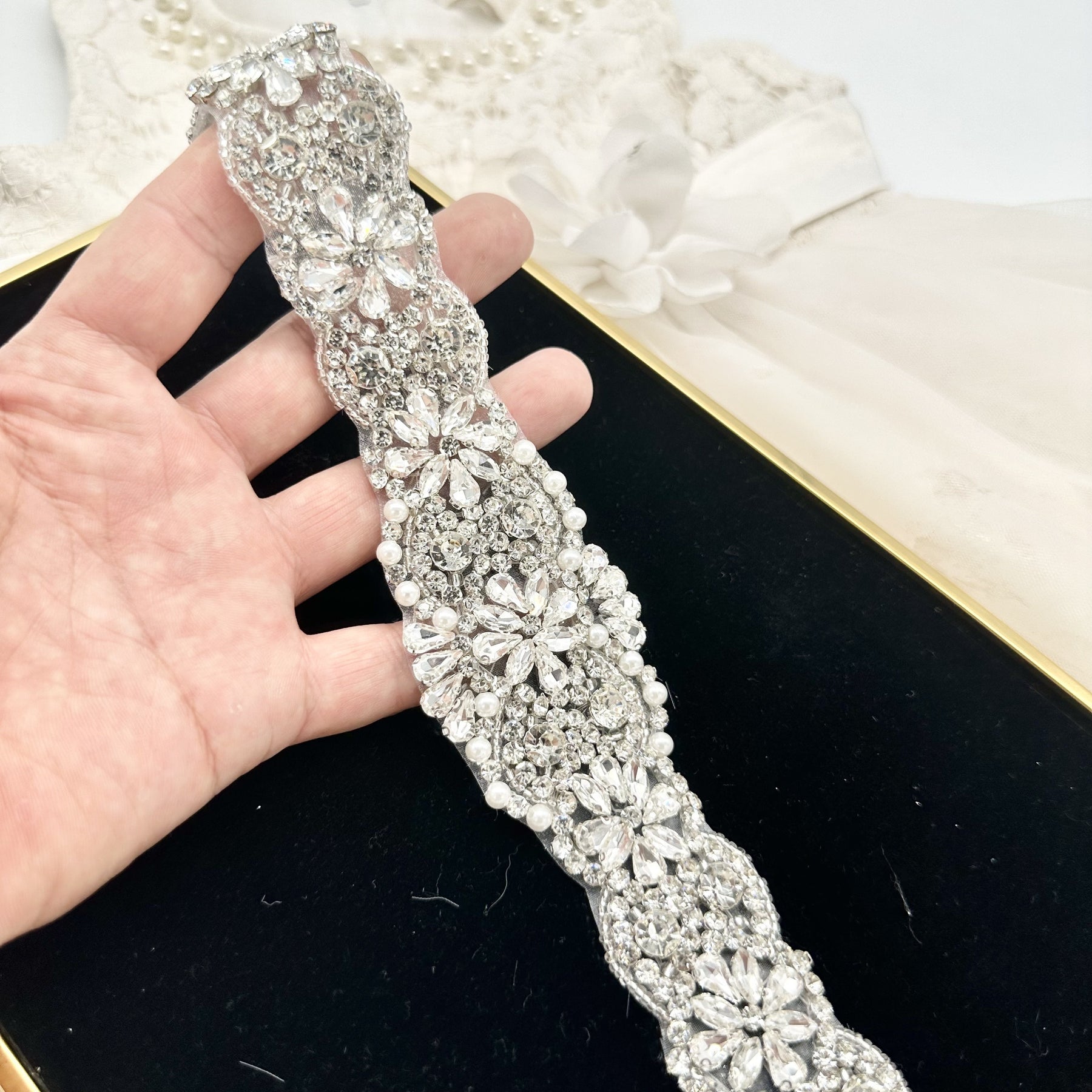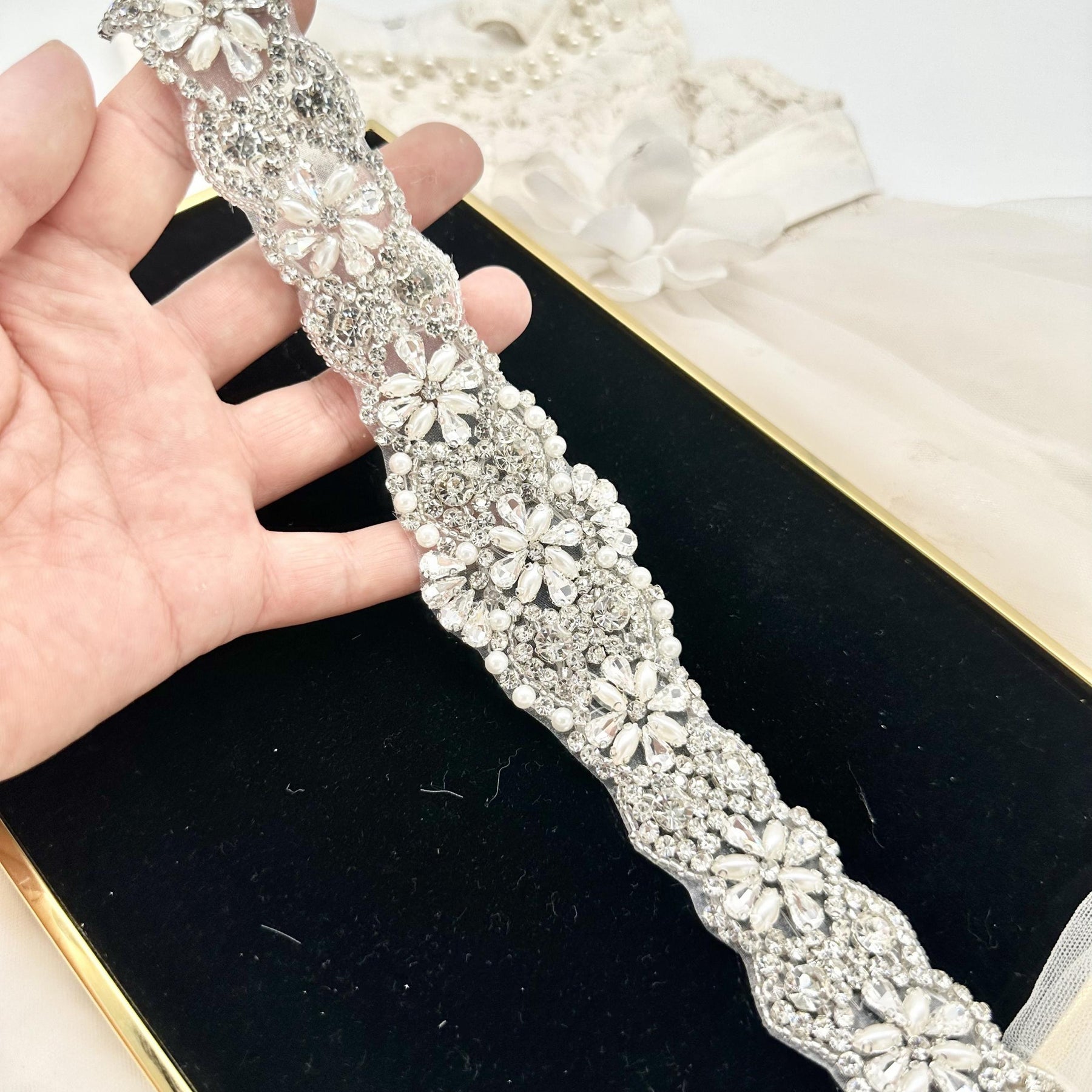 Enhance your wedding dress with this stunning rhinestone waist belt. Perfect for European and American bridal styles, this accessory adds a touch of elegance to your look.