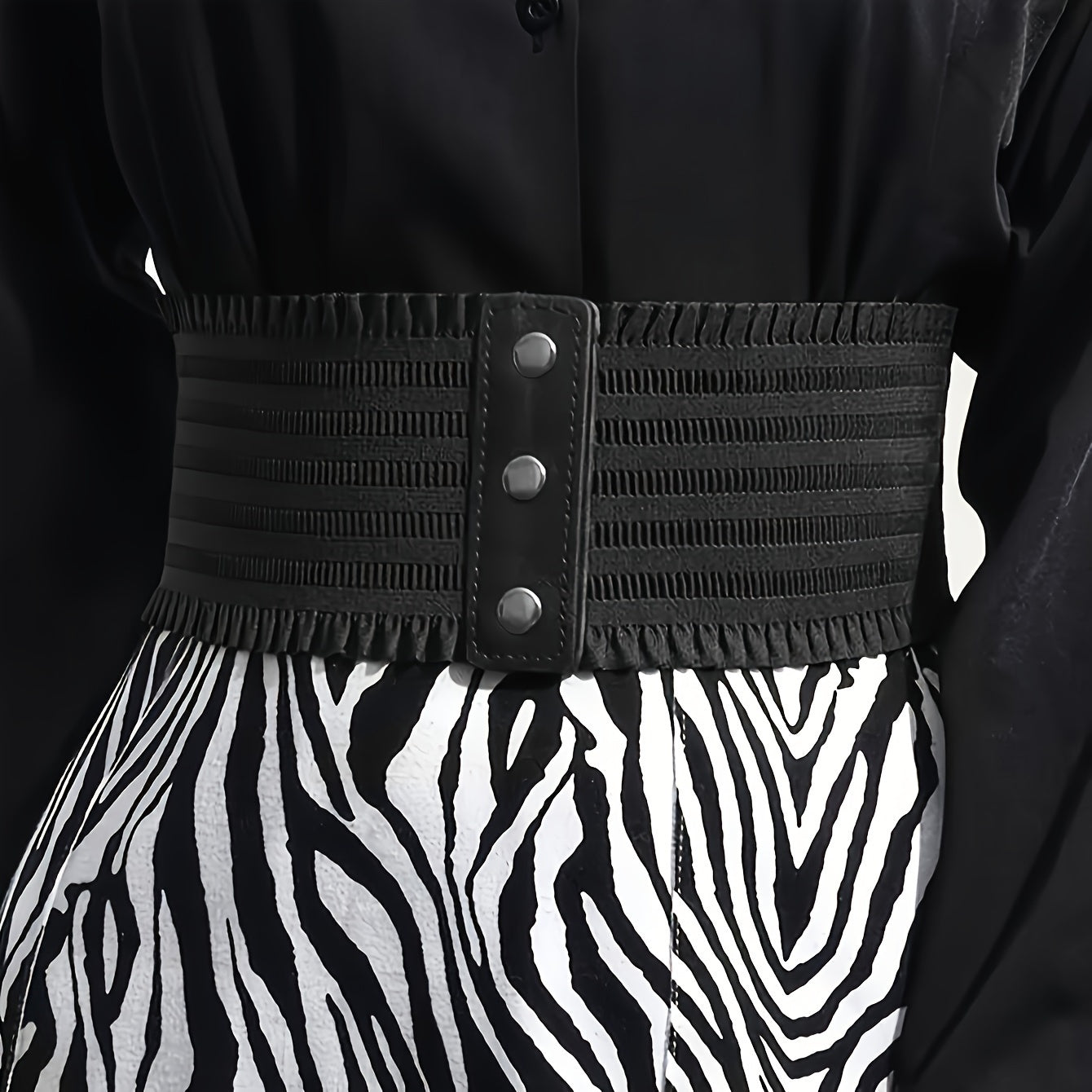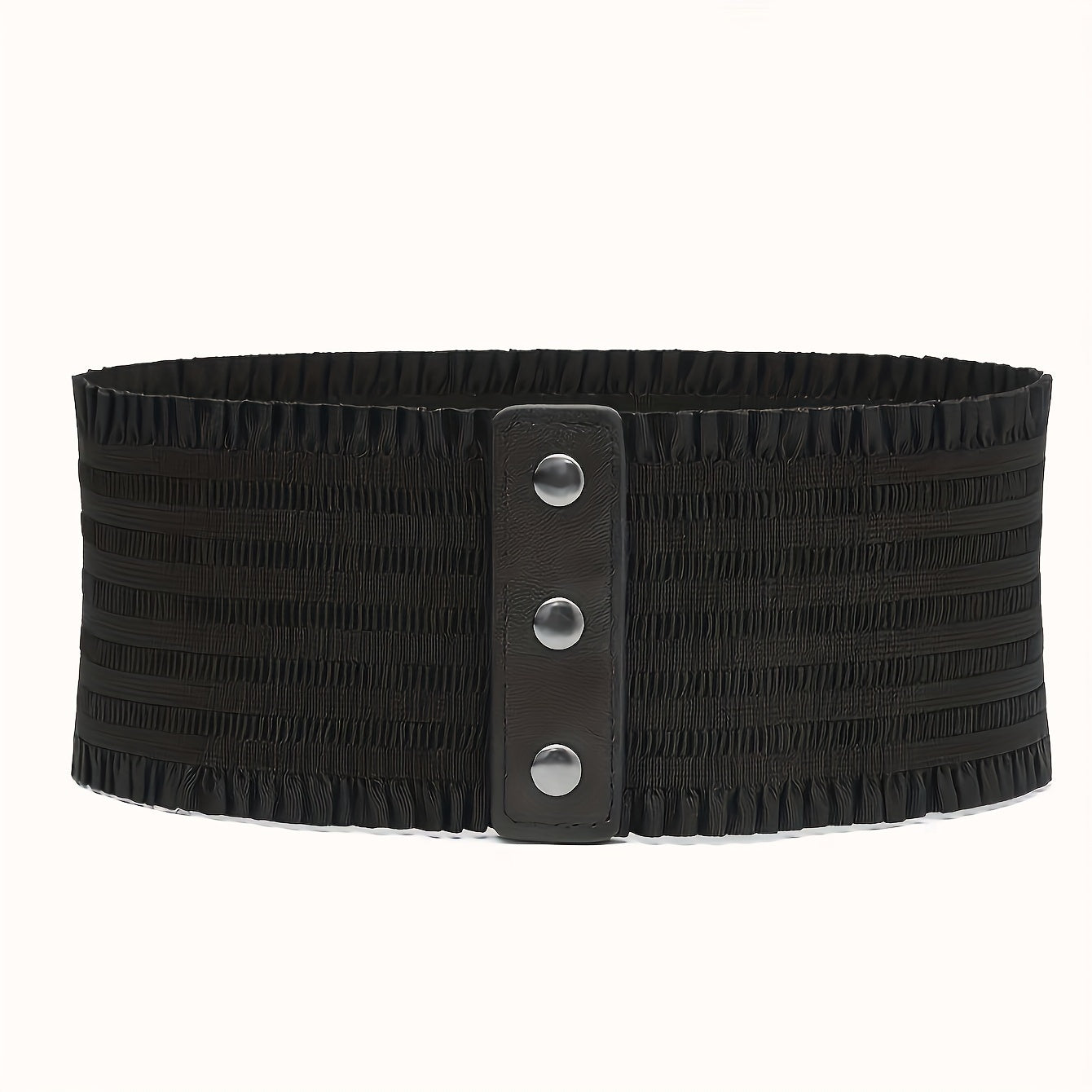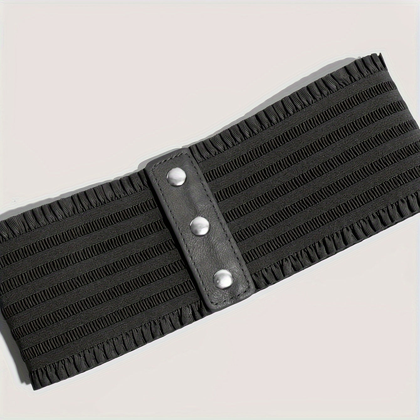 Elevate your outfit with this elastic waistband featuring a chic PU leather detail. Perfect for adding a preppy street style vibe to your casual or formal ensembles.
