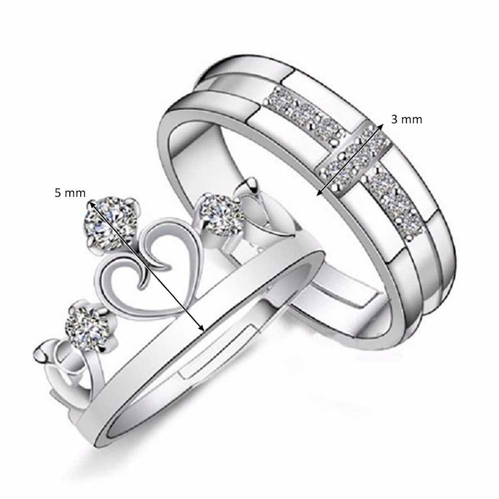 Bagues de couple réglables pour femmes avec pierres en zircone cubique