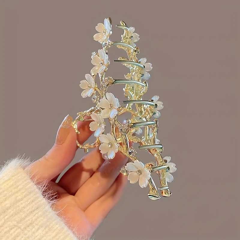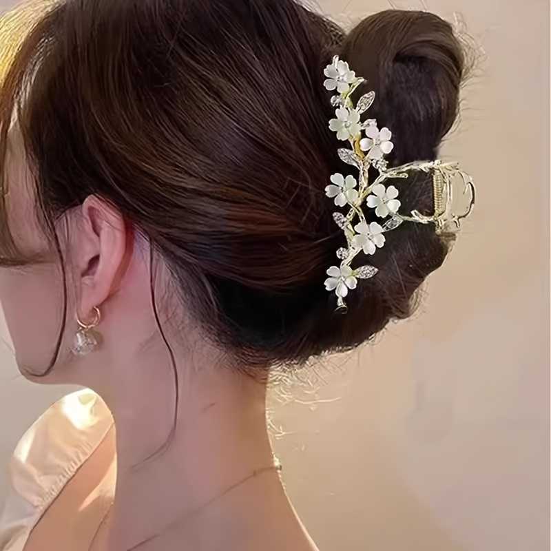 Pince à cheveux élégante en forme de fleur avec strass, grande pince antidérapante pour femme