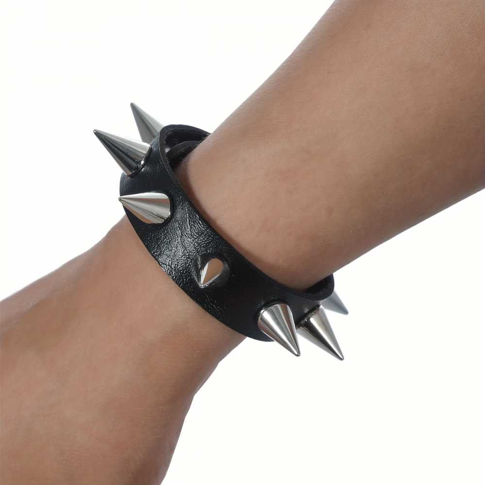 Bracelet unisexe en cuir PU avec rivets et pointes en métal style punk rock, 1 pièce