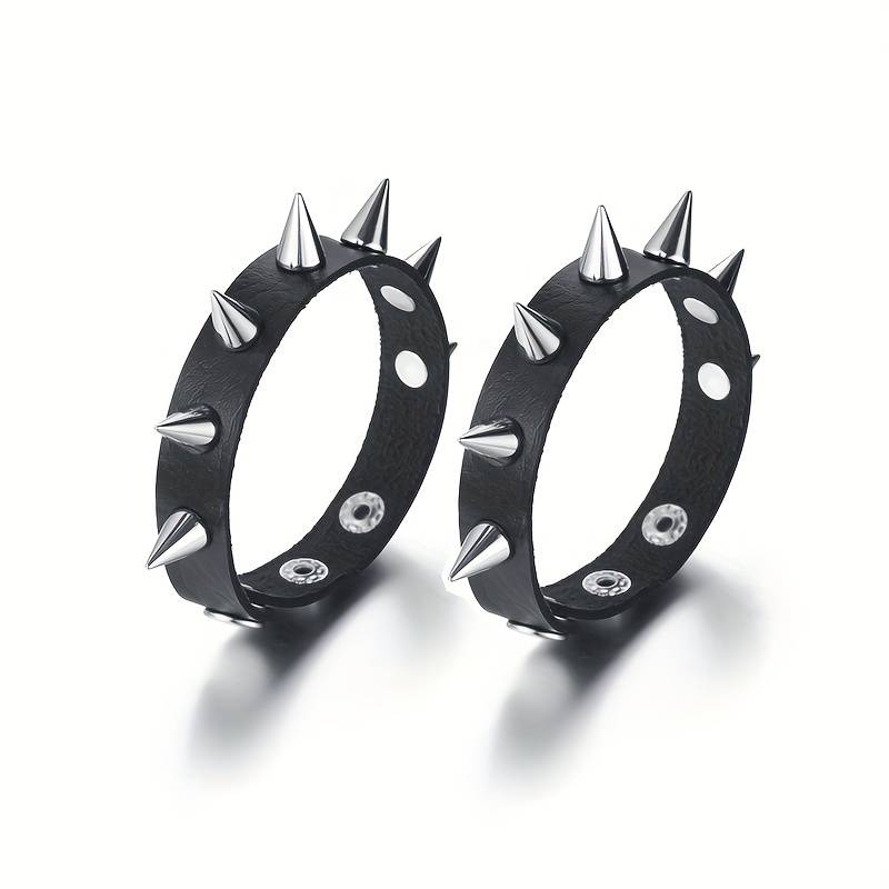 Bling Queen est une marque de bijoux tendance abordable proposant différents types de produits tels que des bracelets, des colliers, des boucles d'oreilles, des bagues, etc. adaptés aux femmes, aux hommes et aux enfants. Libérez votre côté rebelle avec cette paire de bracelets à rivets et pointes en métal punk rock. Fabriqués en cuir PU durable et ornés de pointes et de rivets en métal audacieux, ces bracelets sont conçus pour faire une déclaration puissante. Idéals pour les hommes et les femmes, ils apportent une touche punk distinctive à n'importe quelle tenue. Parfaits pour les concerts, les fêtes ou au quotidien, ces bracelets offrent un style polyvalent qui ajoute une touche de rock and roll à votre look. La conception réglable assure un ajustement confortable, ce qui en fait un accessoire indispensable pour tous ceux qui adoptent la mode avant-gardiste.