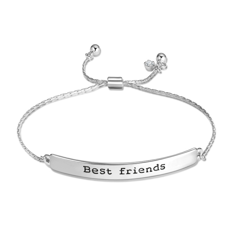 L'amitié est un cadeau en soi. Ce délicat bracelet à barre incurvée est élégant et minimaliste pour les looks de tous les jours avec un fermoir bolo réglable. Il présente une goutte de halo en zircone cubique au niveau du fermoir pour créer un look éblouissant qui fait une déclaration subtile. Ce bracelet gravé est un cadeau parfait pour la Journée de l'amitié. Affichez votre amour, votre affection et votre solidarité à vie pour votre meilleure amie avec ce bracelet.