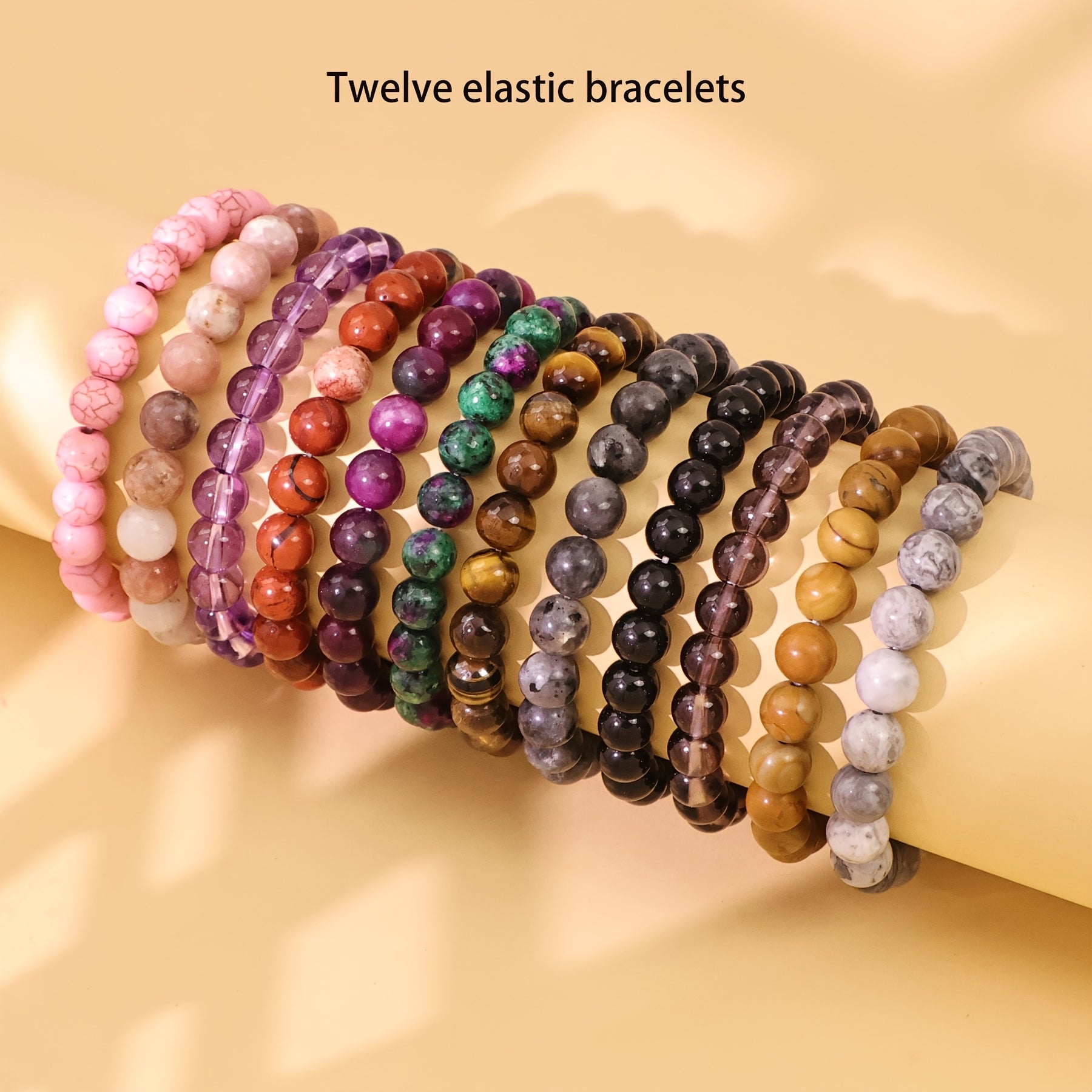 Enjoy the beauty of natural stones with these 12 semi precious bead bracelets. Each 8mm stone is handpicked for quality. Stretch design for easy wear.