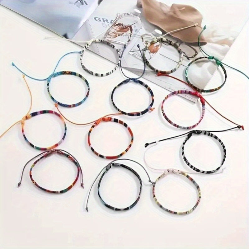 This set includes 12 woven bracelets, perfect for both women and men. They are adjustable to fit different wrist sizes.