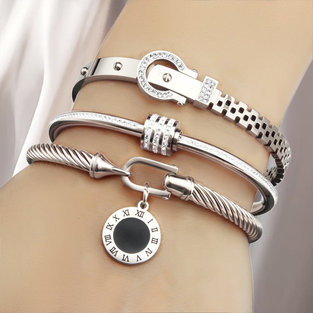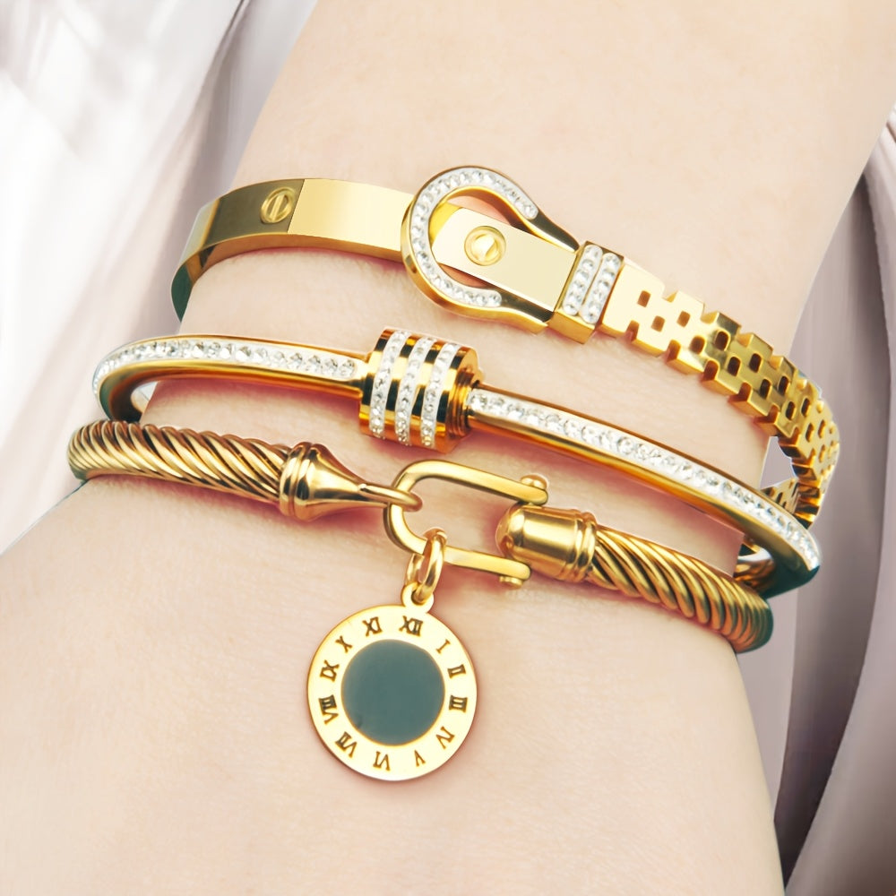 Add a touch of glamour to your outfit with these stunning 18K gold plated bracelets featuring sparkling stones. Perfect for a night out at the club or party!