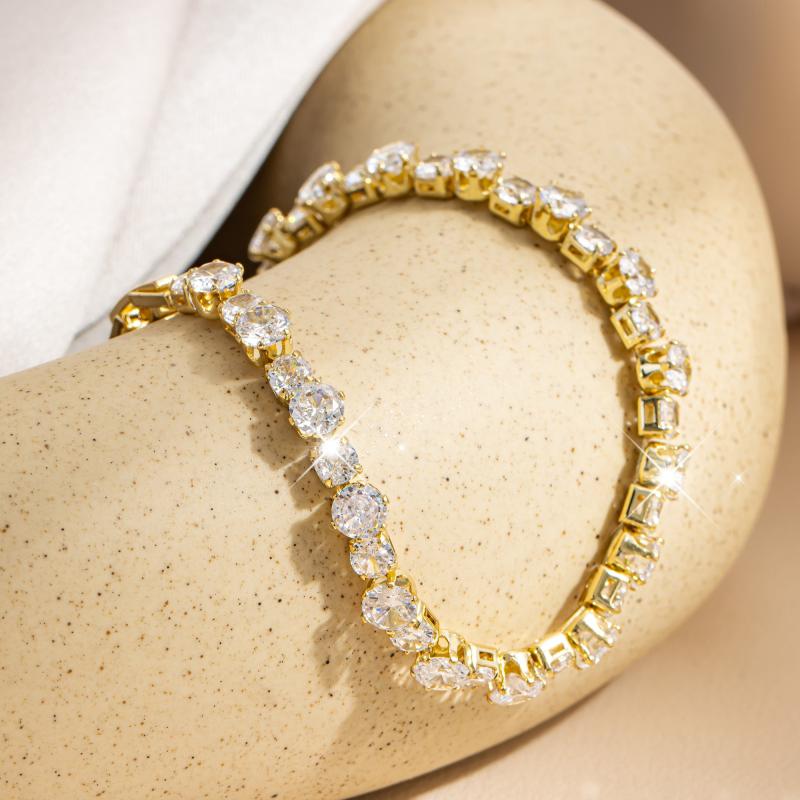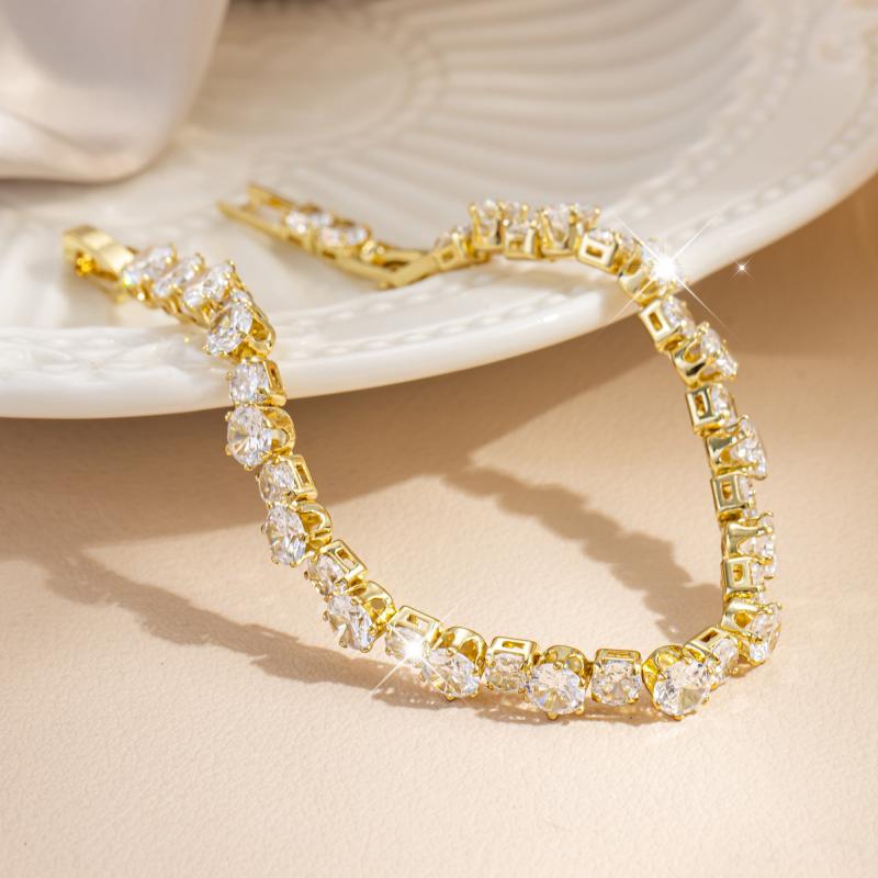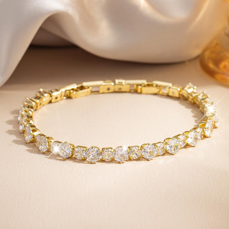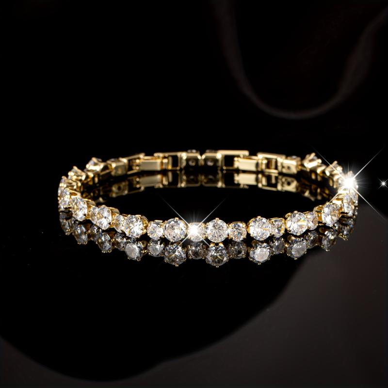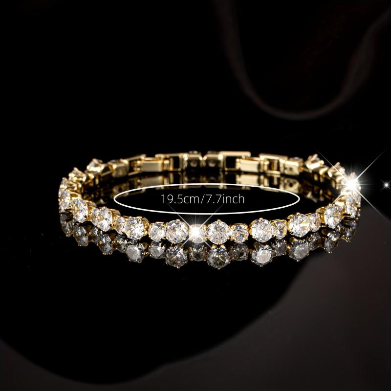 Elegant tennis bracelet with 5A synthetic zirconia, perfect for daily wear or special occasions. Features adjustable detachable chain for a customized fit.