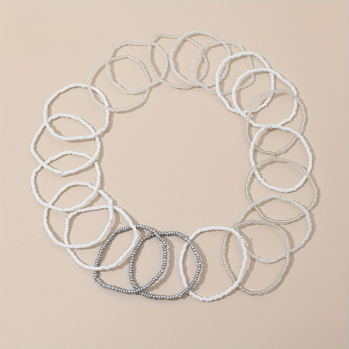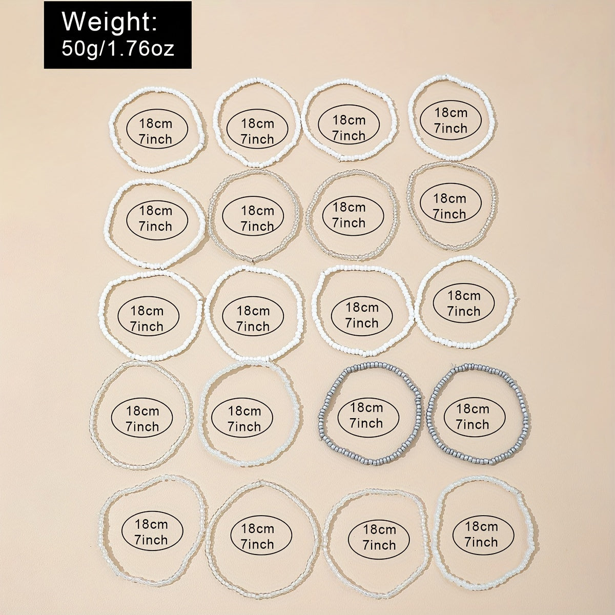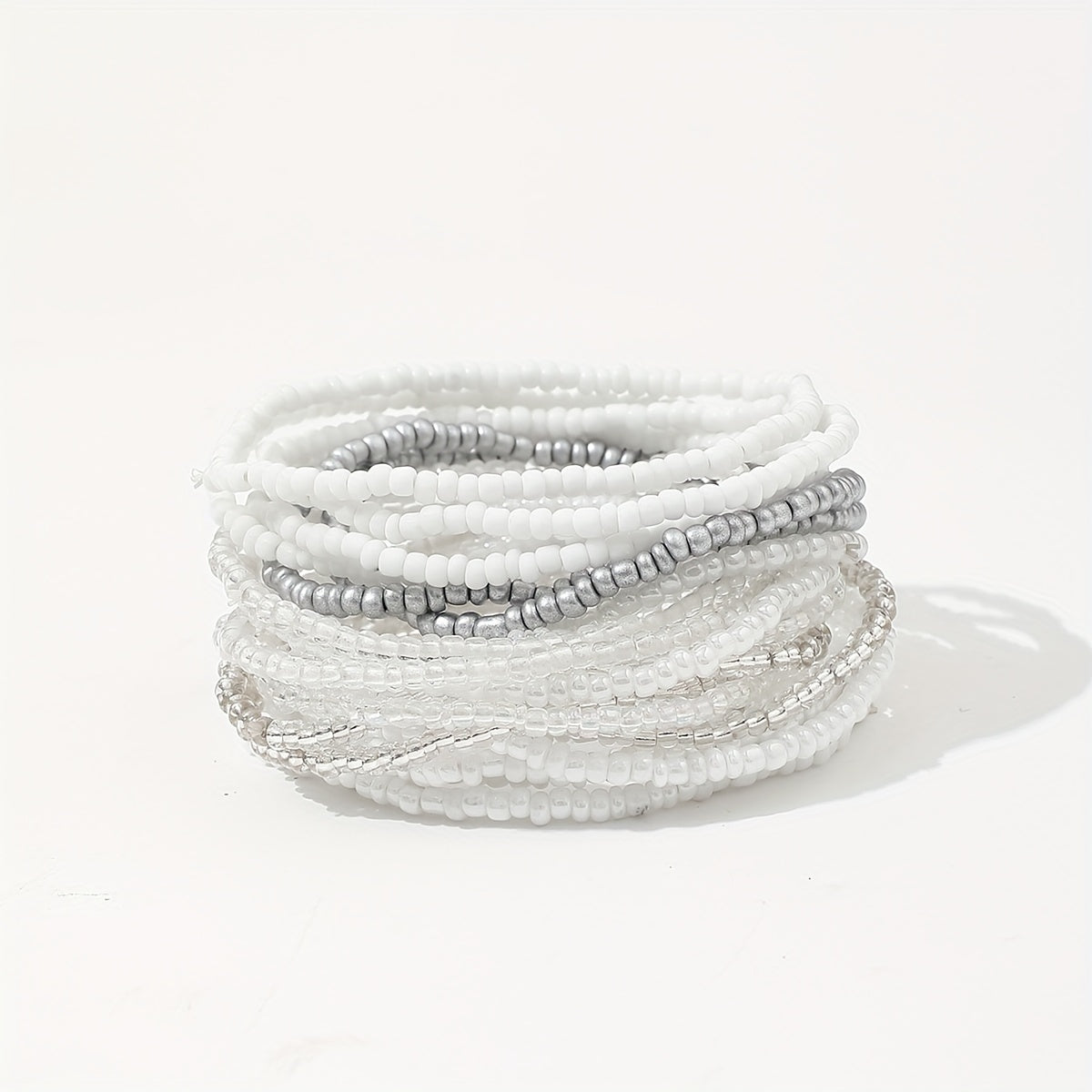 Elevate your style with this set of 20 rice beads bracelets in a bohemian design. Stackable and perfect for creating a trendy look.