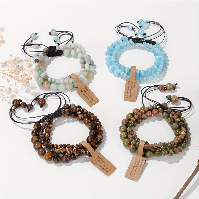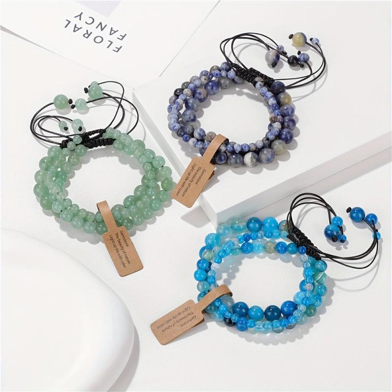 3pcs Natural Stone Beaded Bracelets for Women