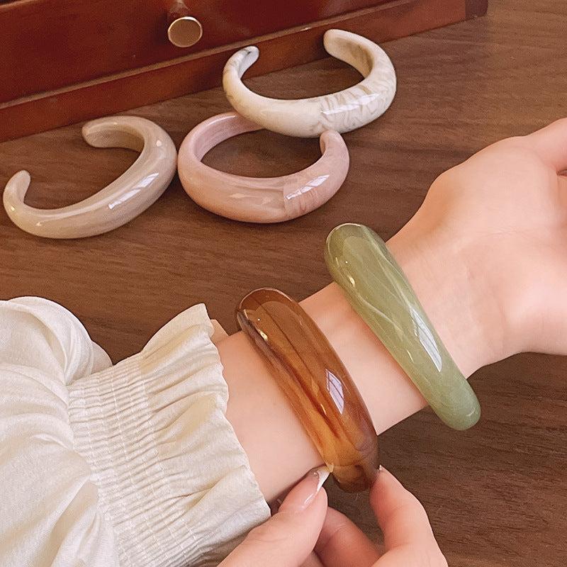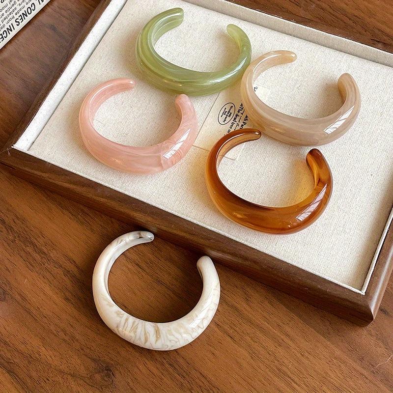 Elevate your style with these fashionable and versatile acrylic cuff bracelets. Perfect for daily wear or vacation outfits, these bangles add a small fresh touch to any look.