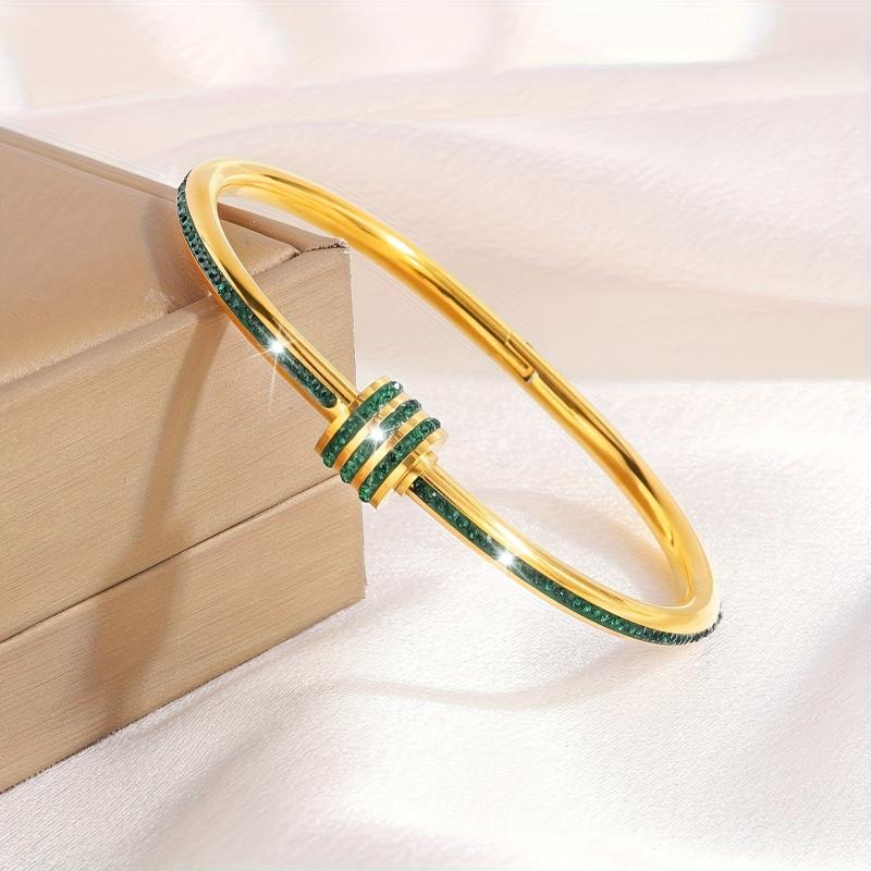 Elevate your wrist game with this romantic set of stainless steel bracelets featuring a sophisticated 18K gold plating and synthetic zirconia drip finish. Perfect for any occasion.