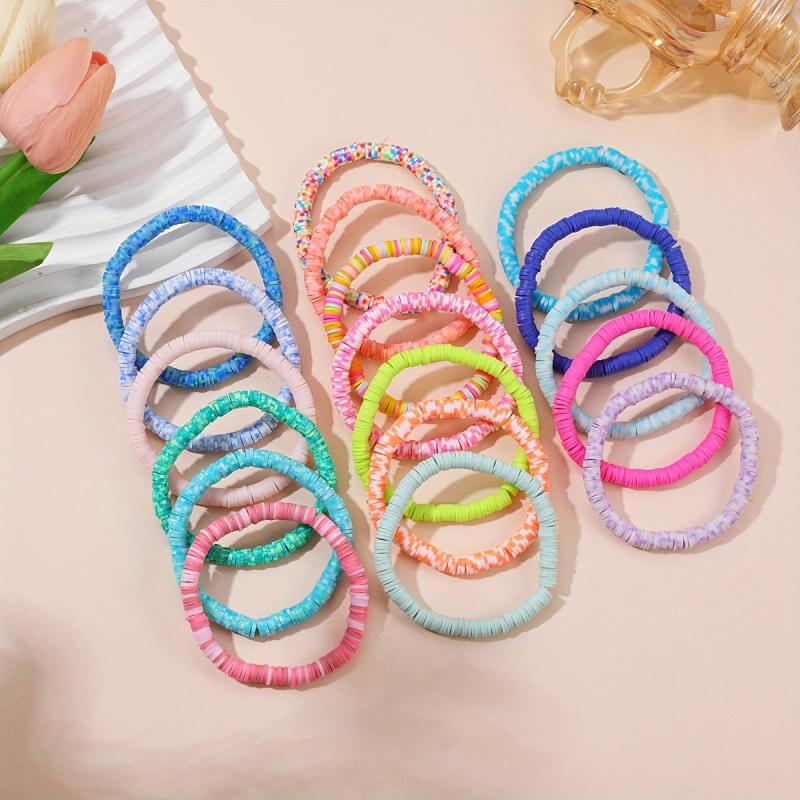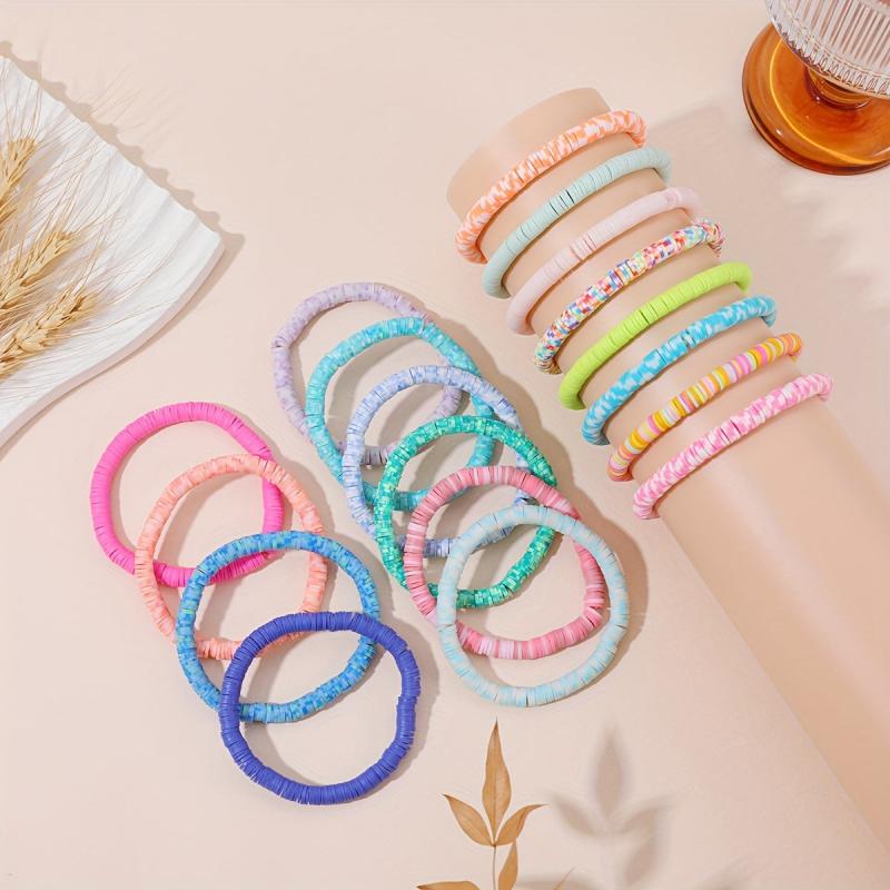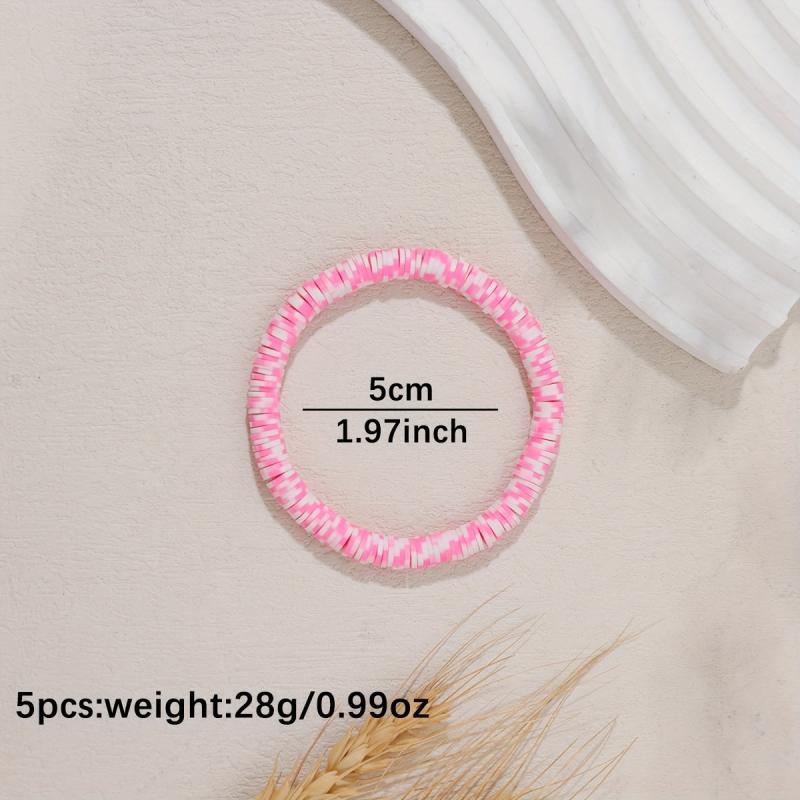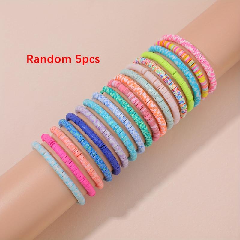 5pcs Soft Clay Bracelet Set Bohemian Casual Layering for Vacation