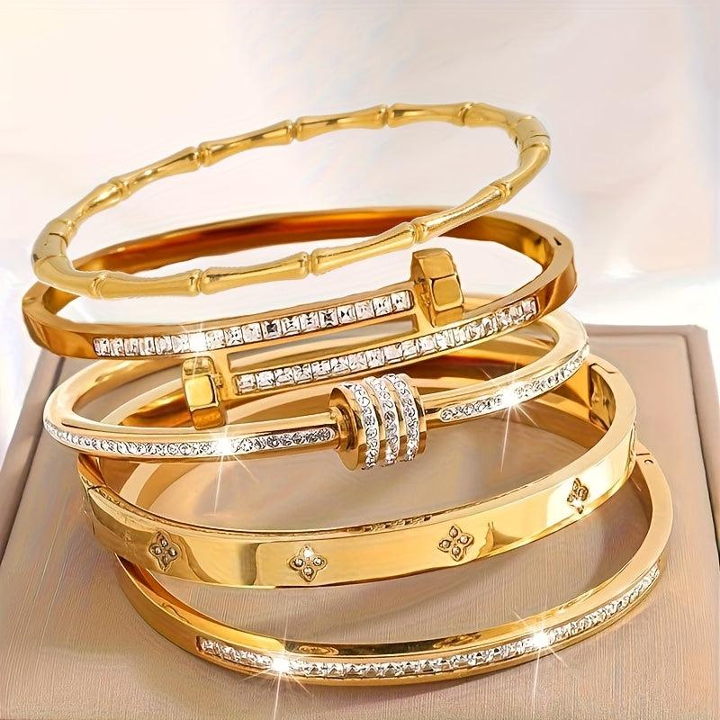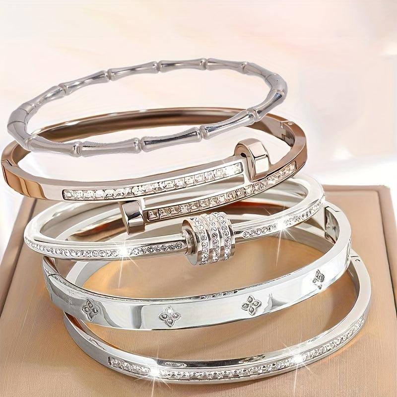 This set includes 5 stainless steel bracelets that can be worn on casual holidays as well as formal occasions. Add a touch of style to your outfit with these versatile accessories.