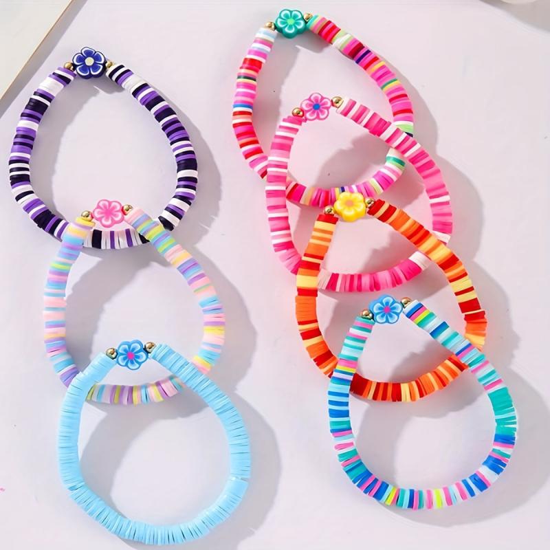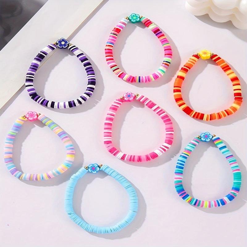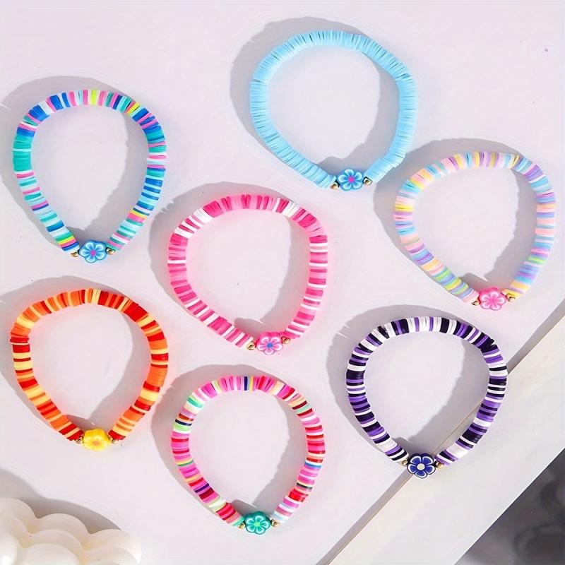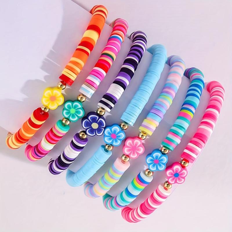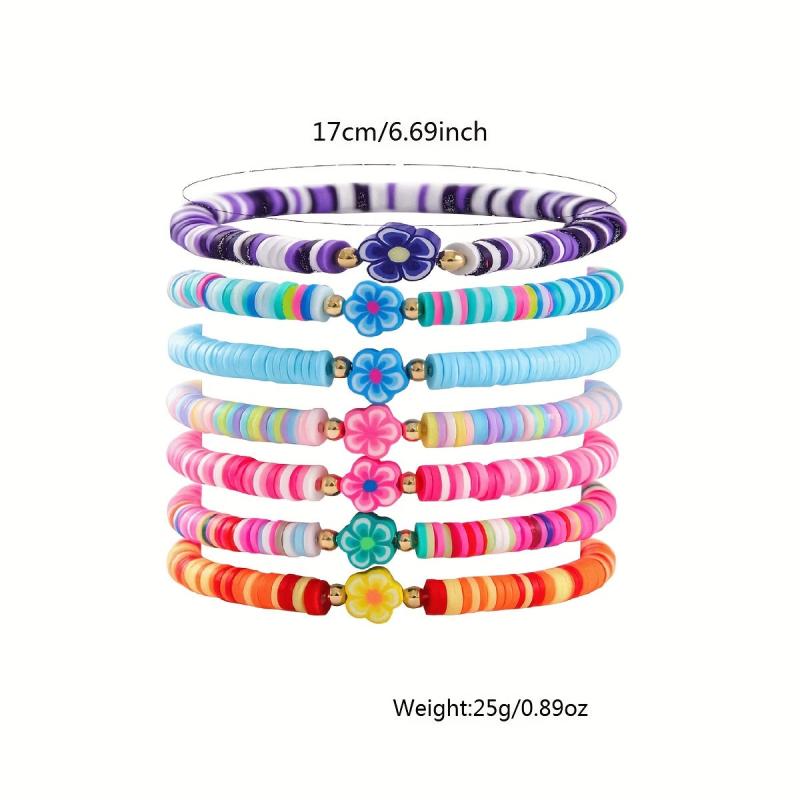 7 Pcs Bohemian Flower Charm Bracelet Set Colorful Polymer Clay Beads