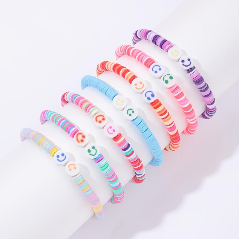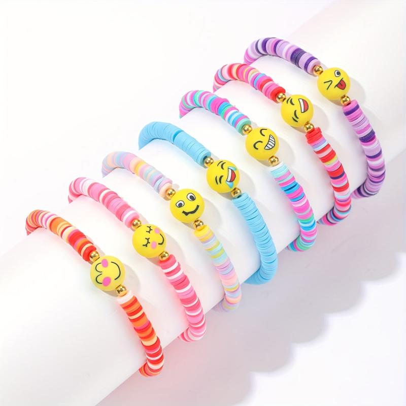 Add a touch of bohemian charm to your summer beach wear with this set of 7 bracelets featuring vibrant tropical and egg flower designs. Made with colorful polymer clay beads, these bracelets are perfect for gifting or adding a pop of color to your outfit.