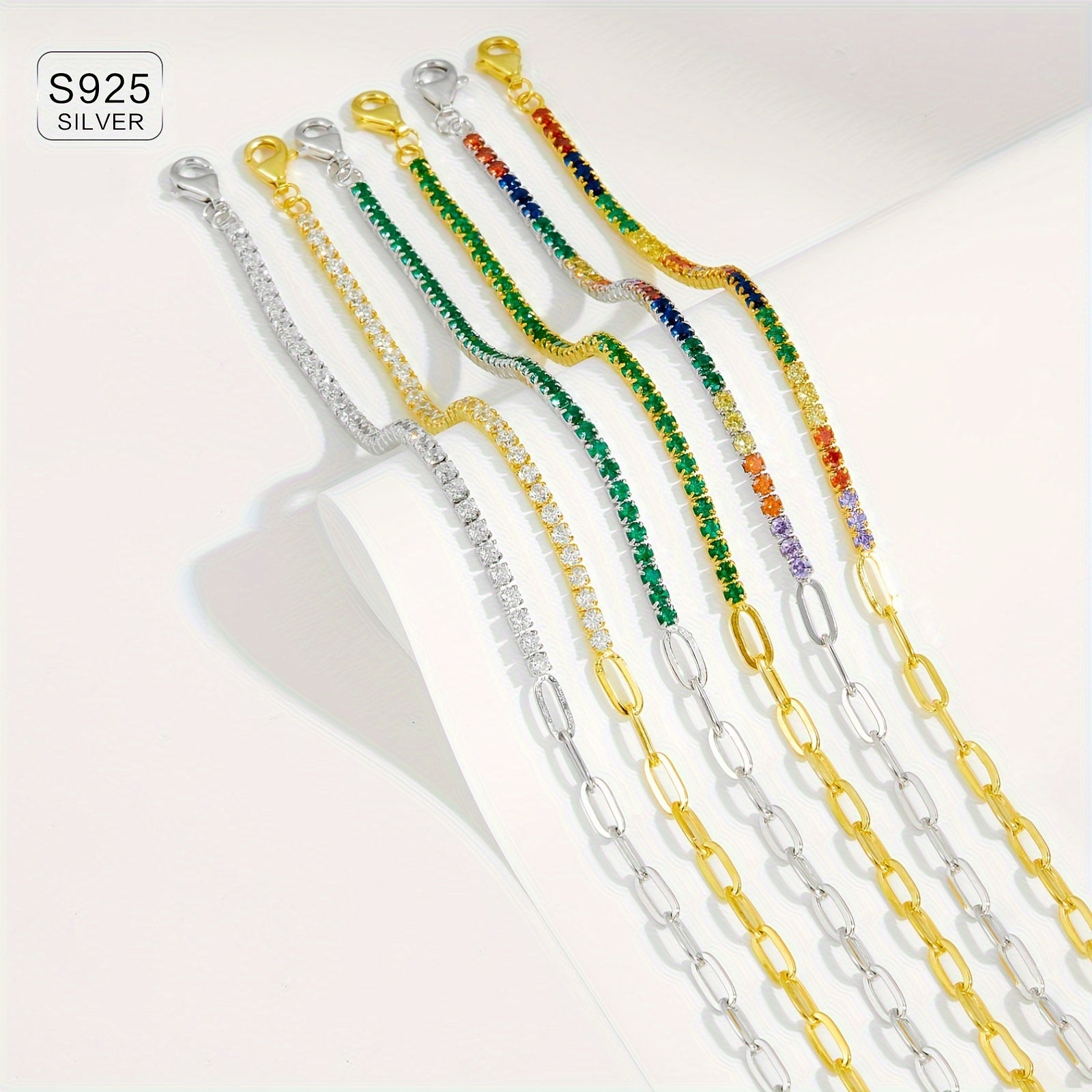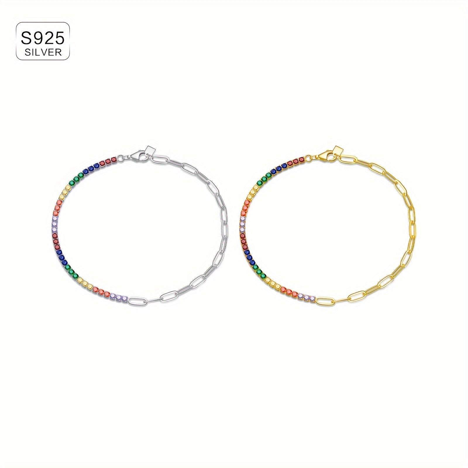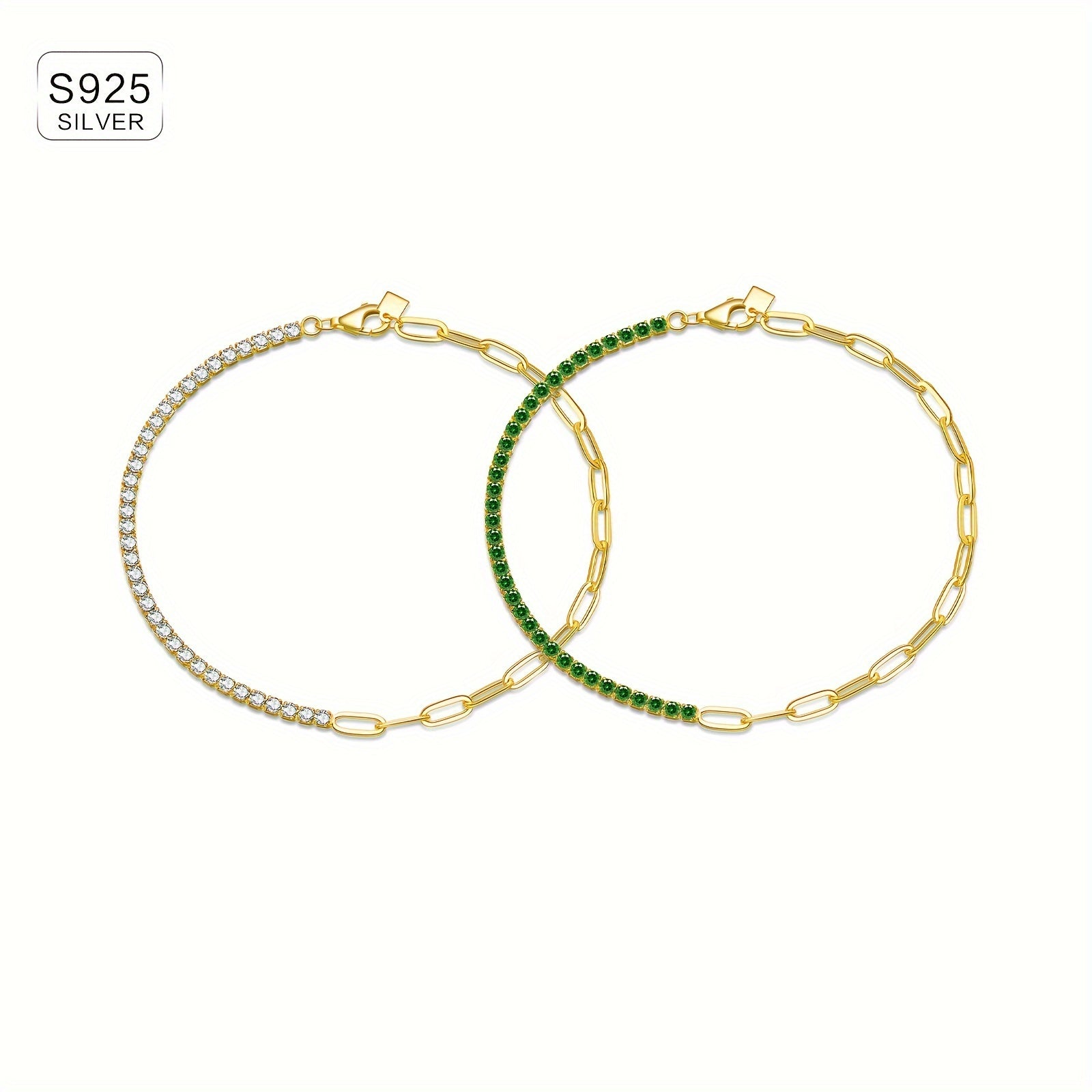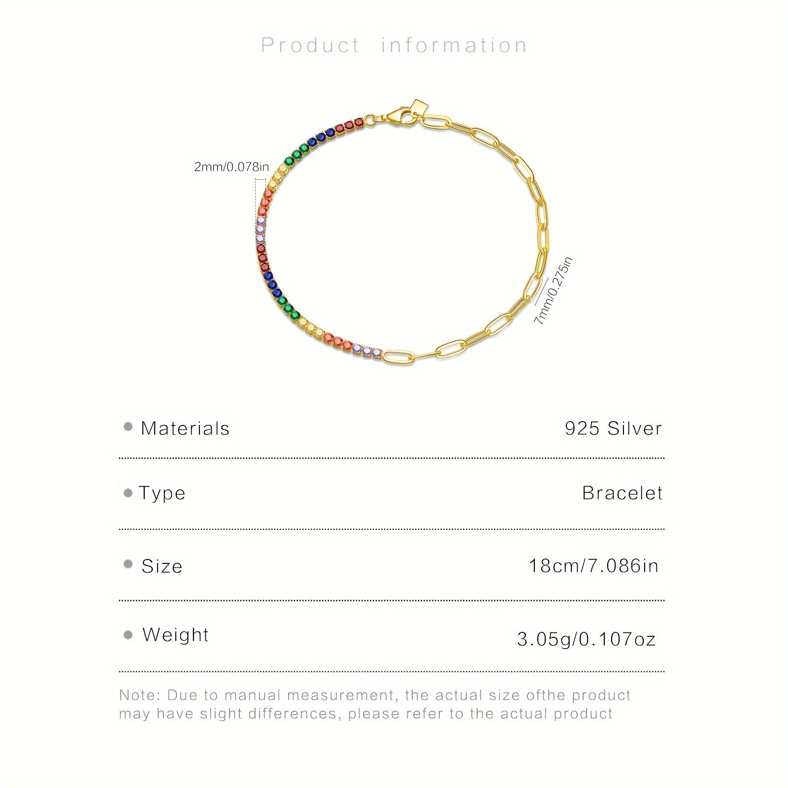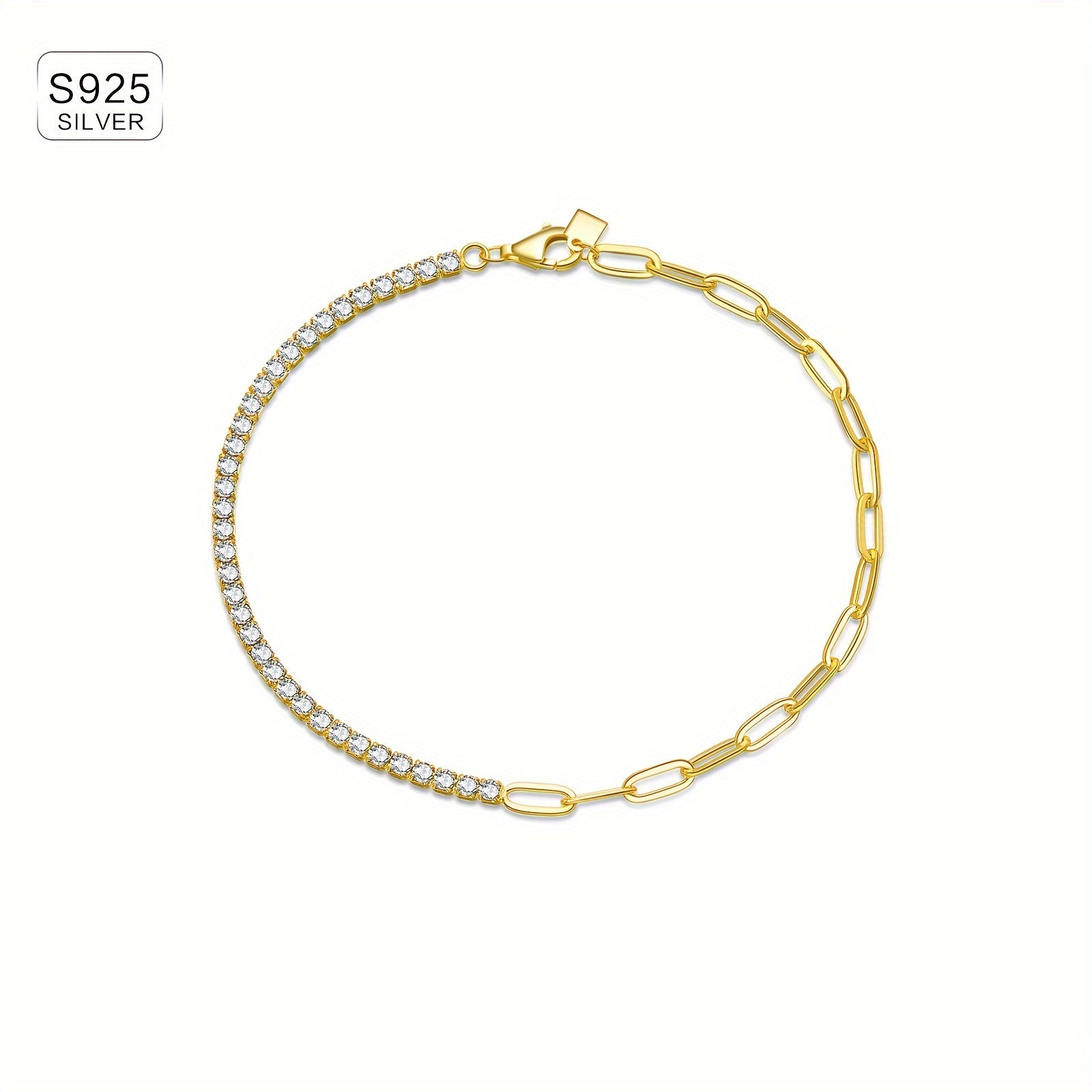 Elegant link bracelet made of 925 sterling silver with synthetic cubic zirconia stones and 18K golden plating. Perfect for daily wear, travel, and special occasions.