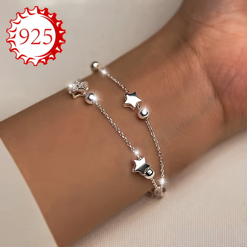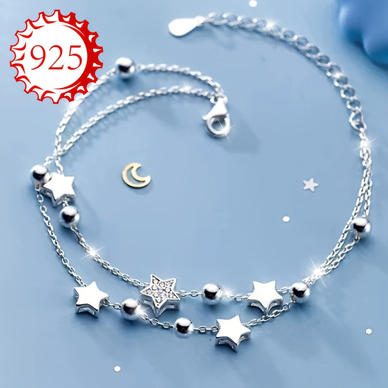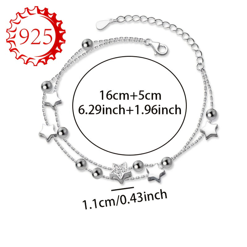 This bracelet is made of 925 silver and features a double layer design with sparkling stars and beads. It's perfect for all seasons and occasions like gifting, weddings, beach vacations.