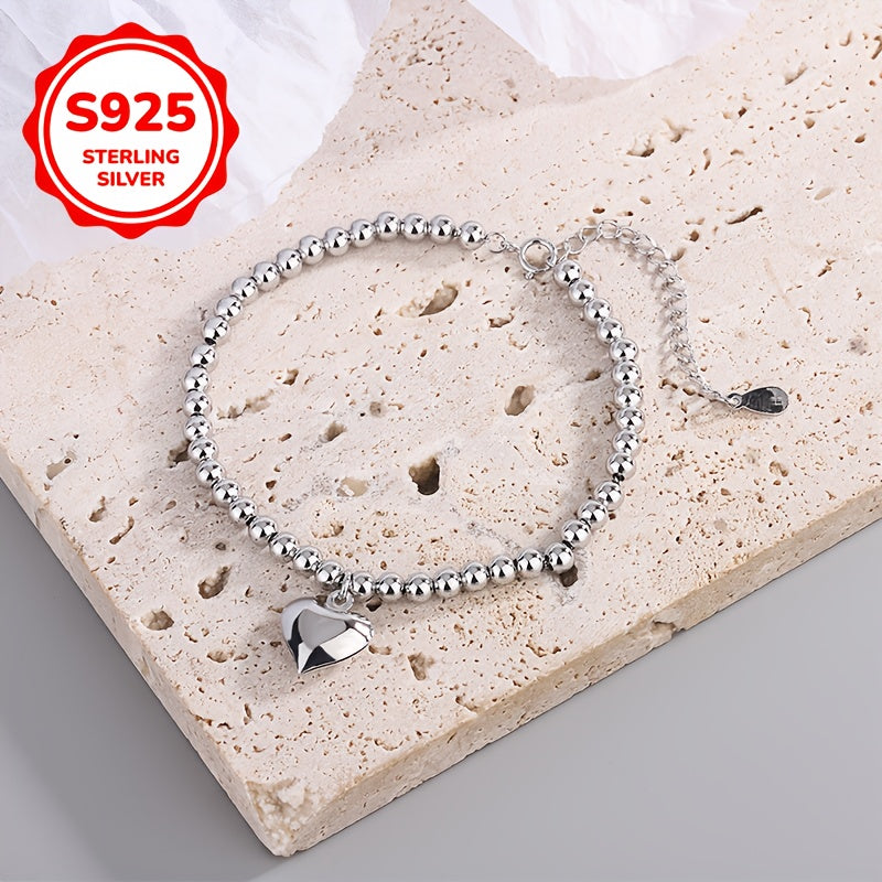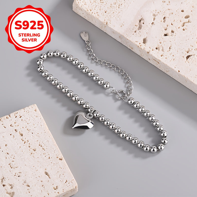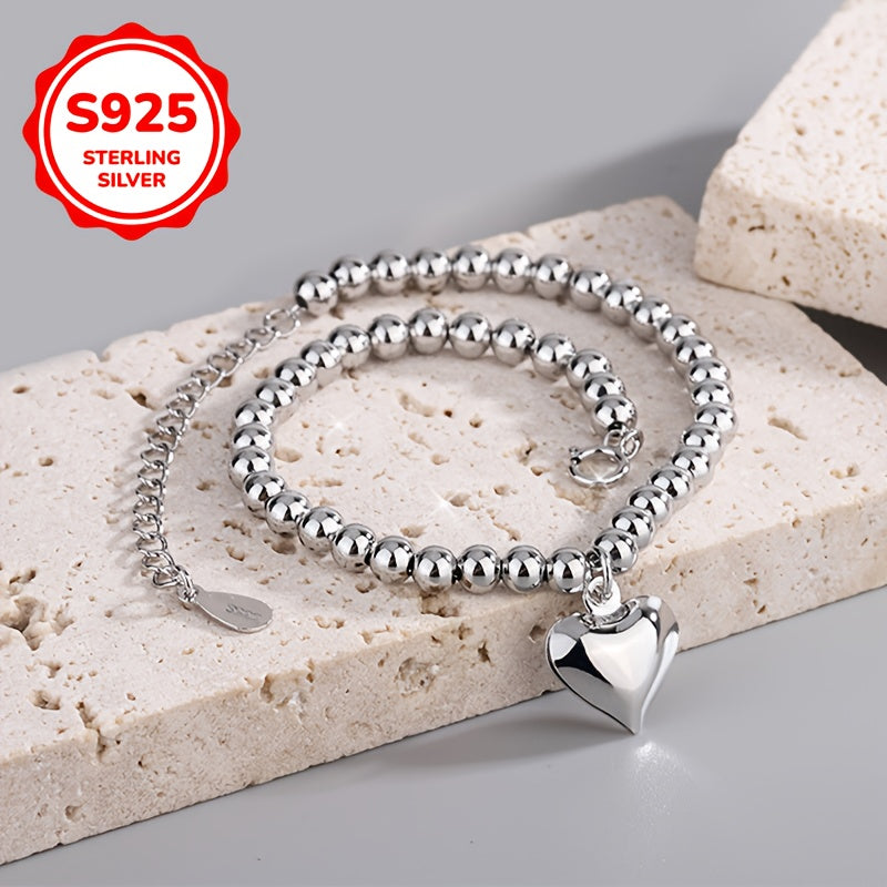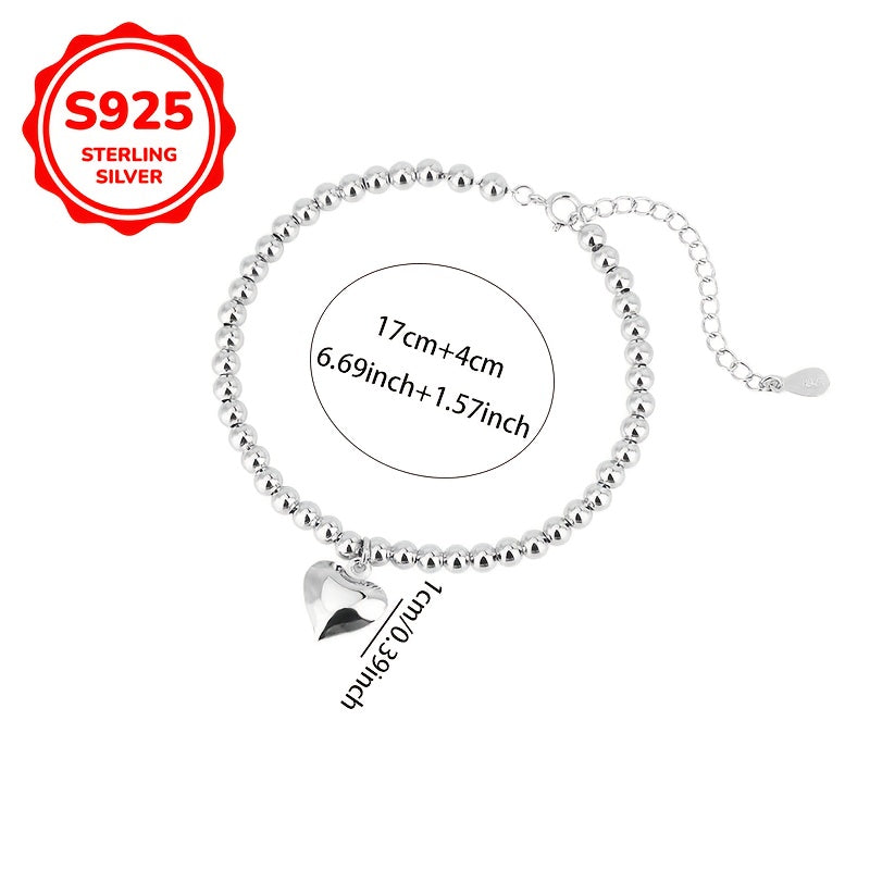 Add a touch of elegance to your look with this 925 silver bracelet featuring a single heart-shaped bead. Hypoallergenic and versatile, it is perfect for any season or occasion!