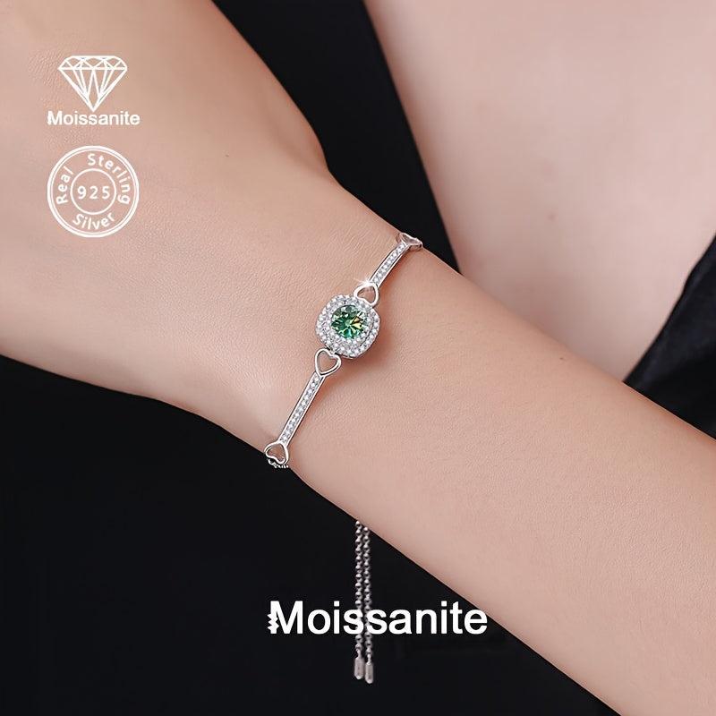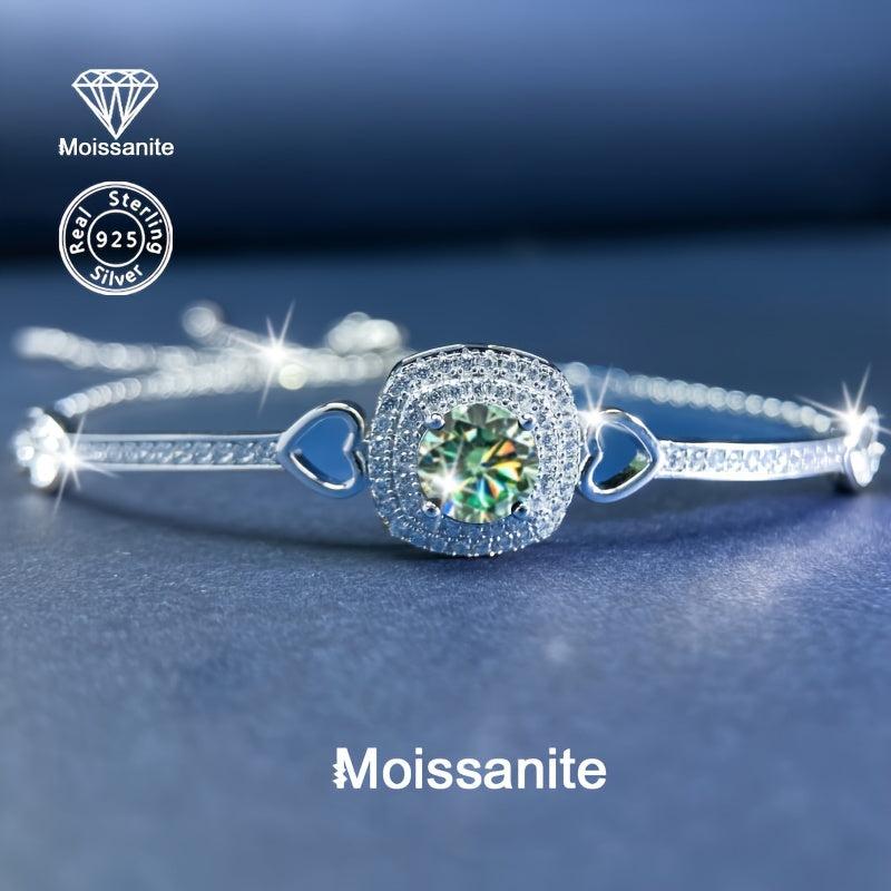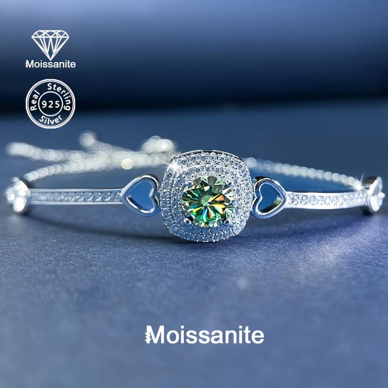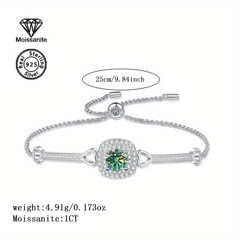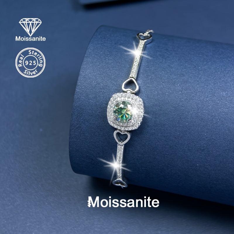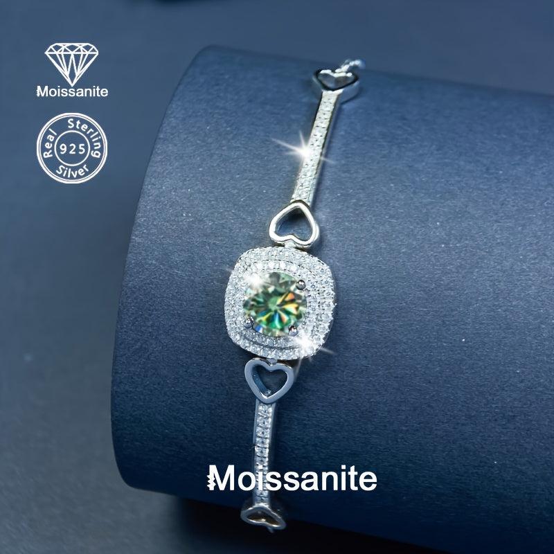 Add some glamour to your look with this stunning 925 silver bracelet featuring a sparkling 1 carat moissanite stone. Elevate your style with this elegant and timeless piece.