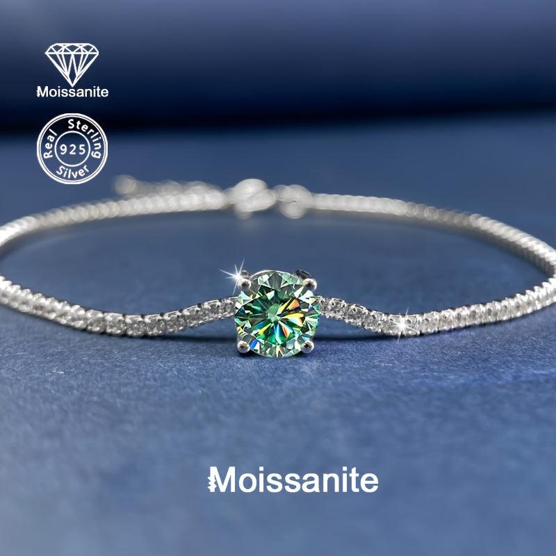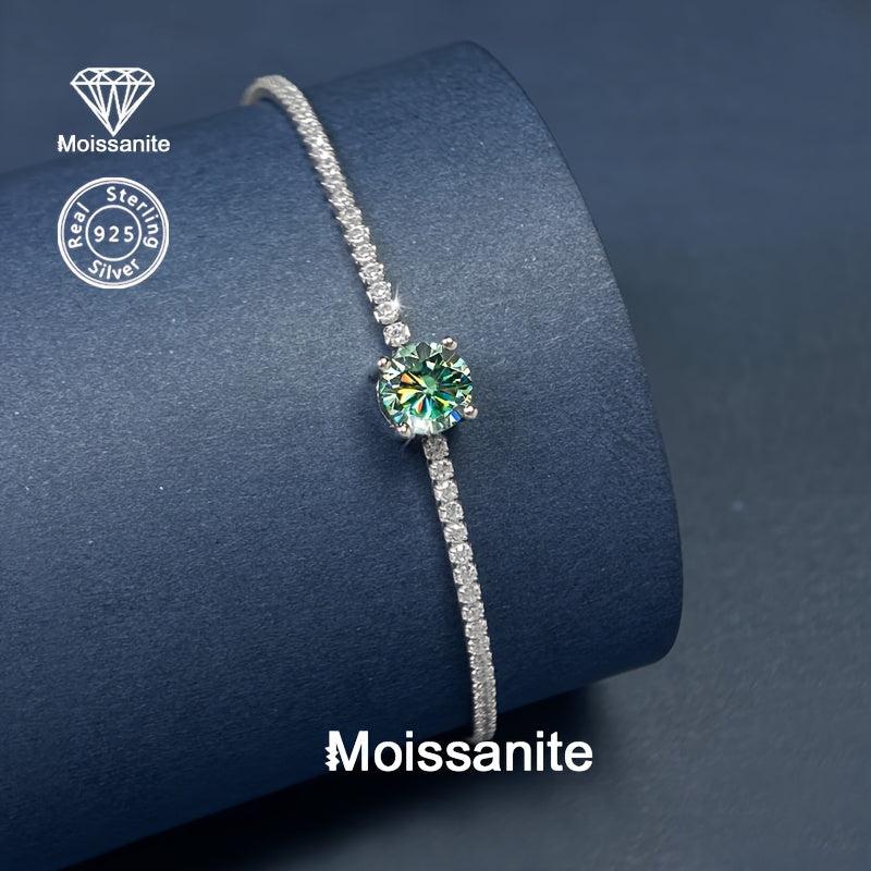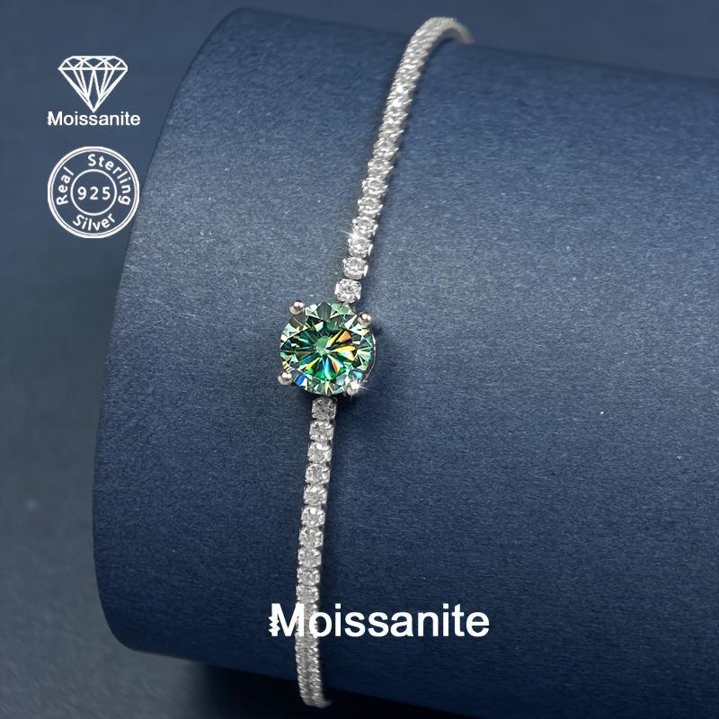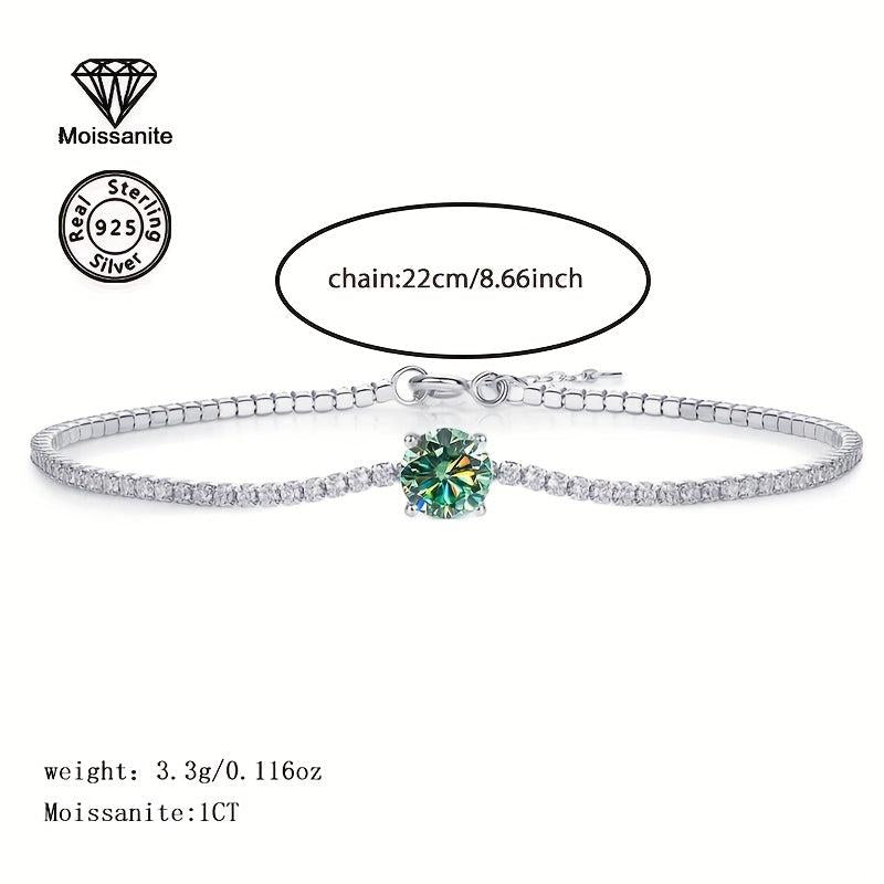 Add a touch of elegance with this stunning 925 silver bracelet featuring a sparkling green moissanite stone. Perfect for various occasions like Valentine's Day, Christmas, Halloween, birthdays, New Year's parties, and weddings.