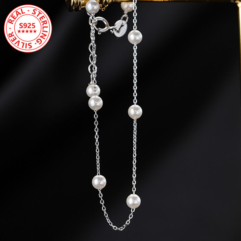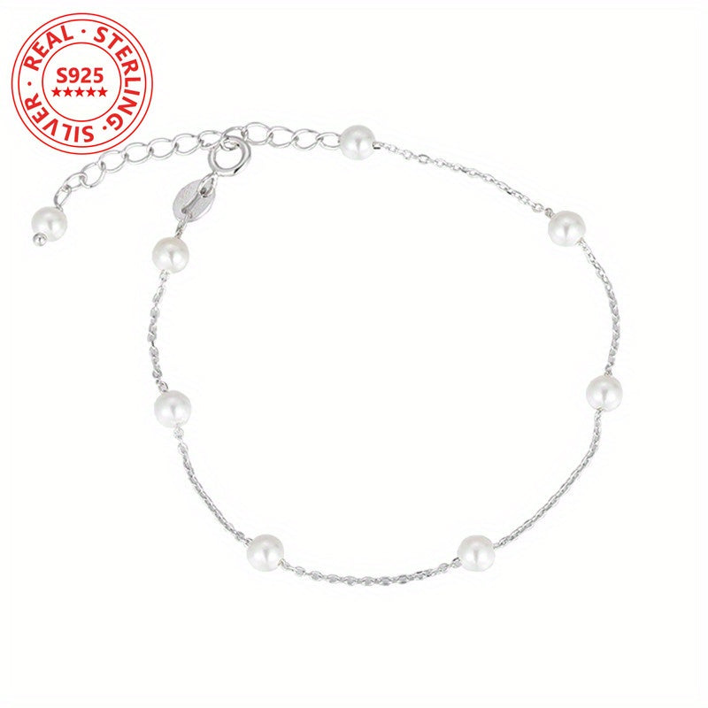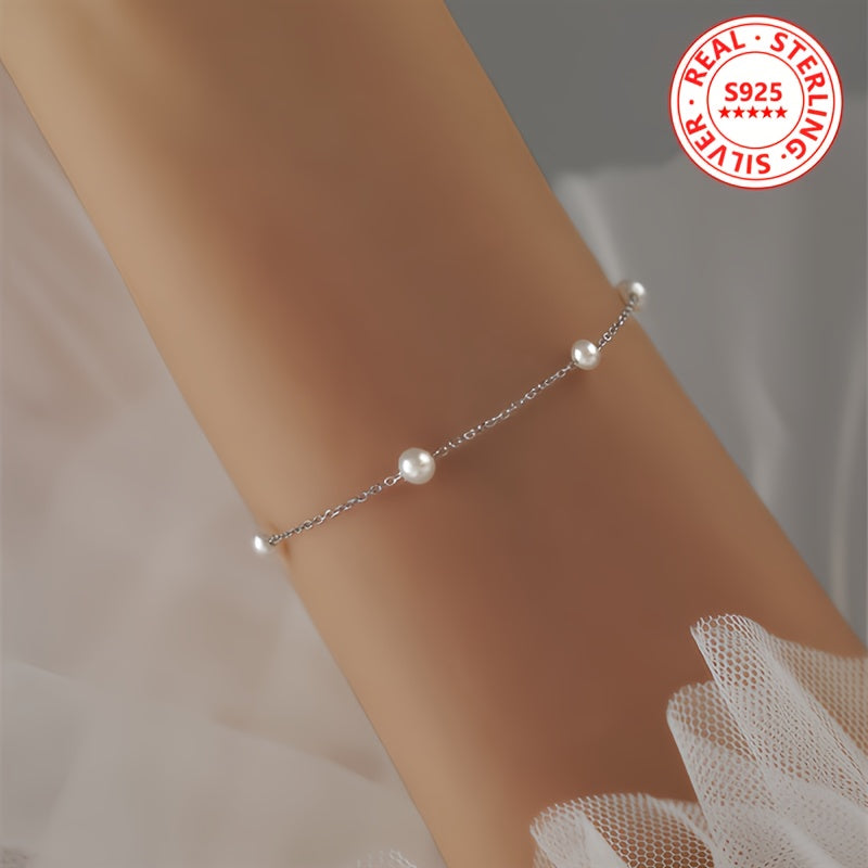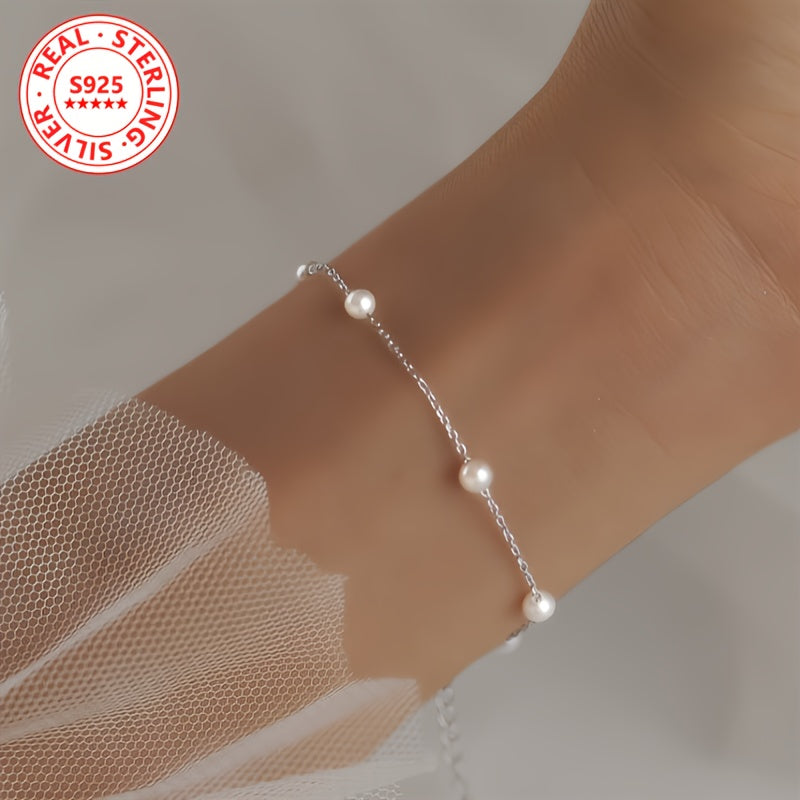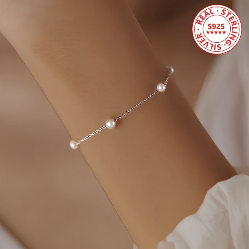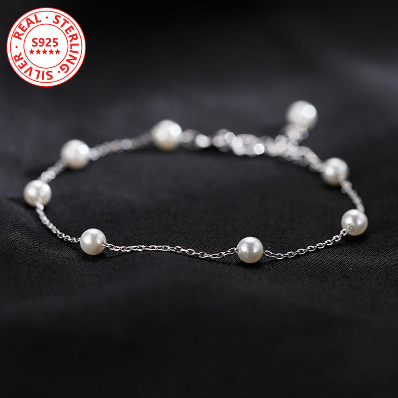 Elegant women's bracelet featuring shell beads on a 925 silver chain with platinum plating. A perfect accessory for any outfit.