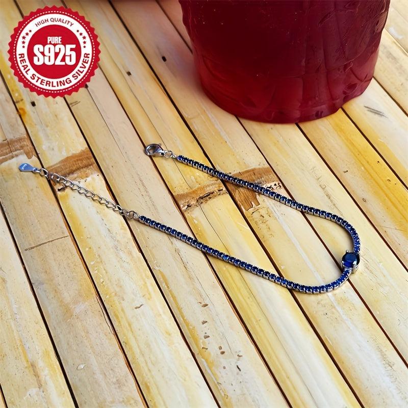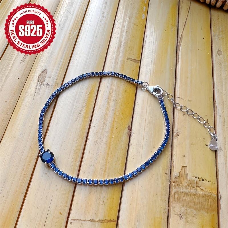 Gorgeous tennis chain bracelet made of 925 sterling silver adorned with sparkling zirconia stones. Ideal for engagements and birthdays. Weighs 3.7g.