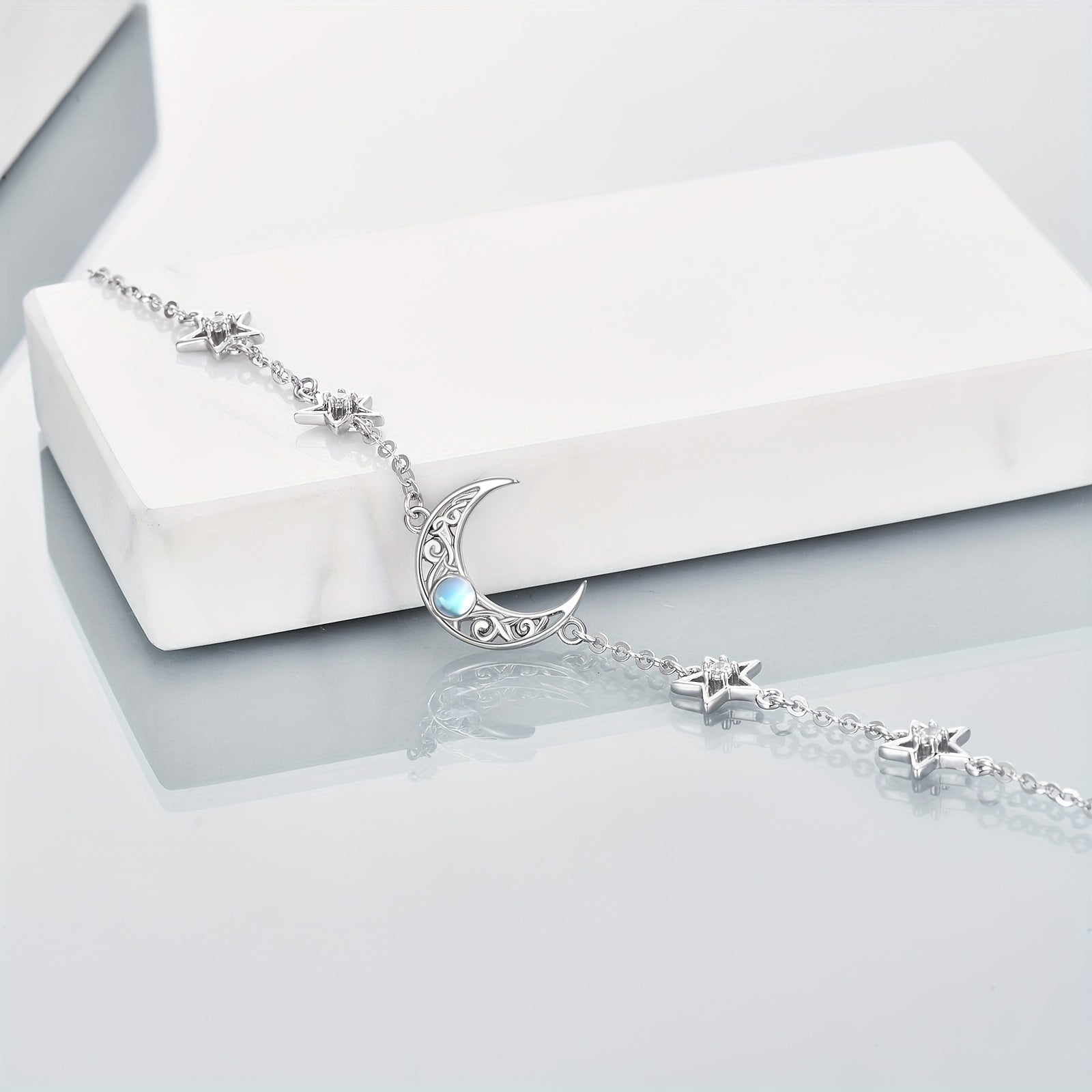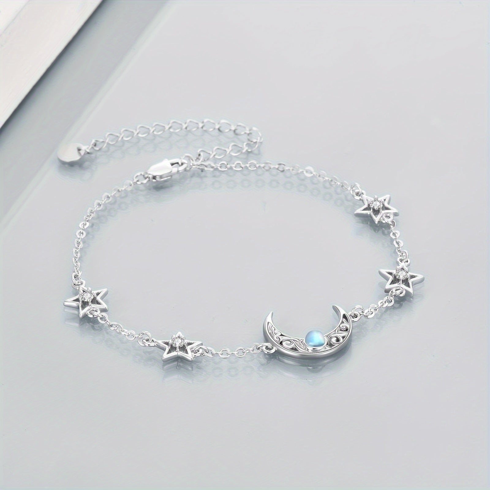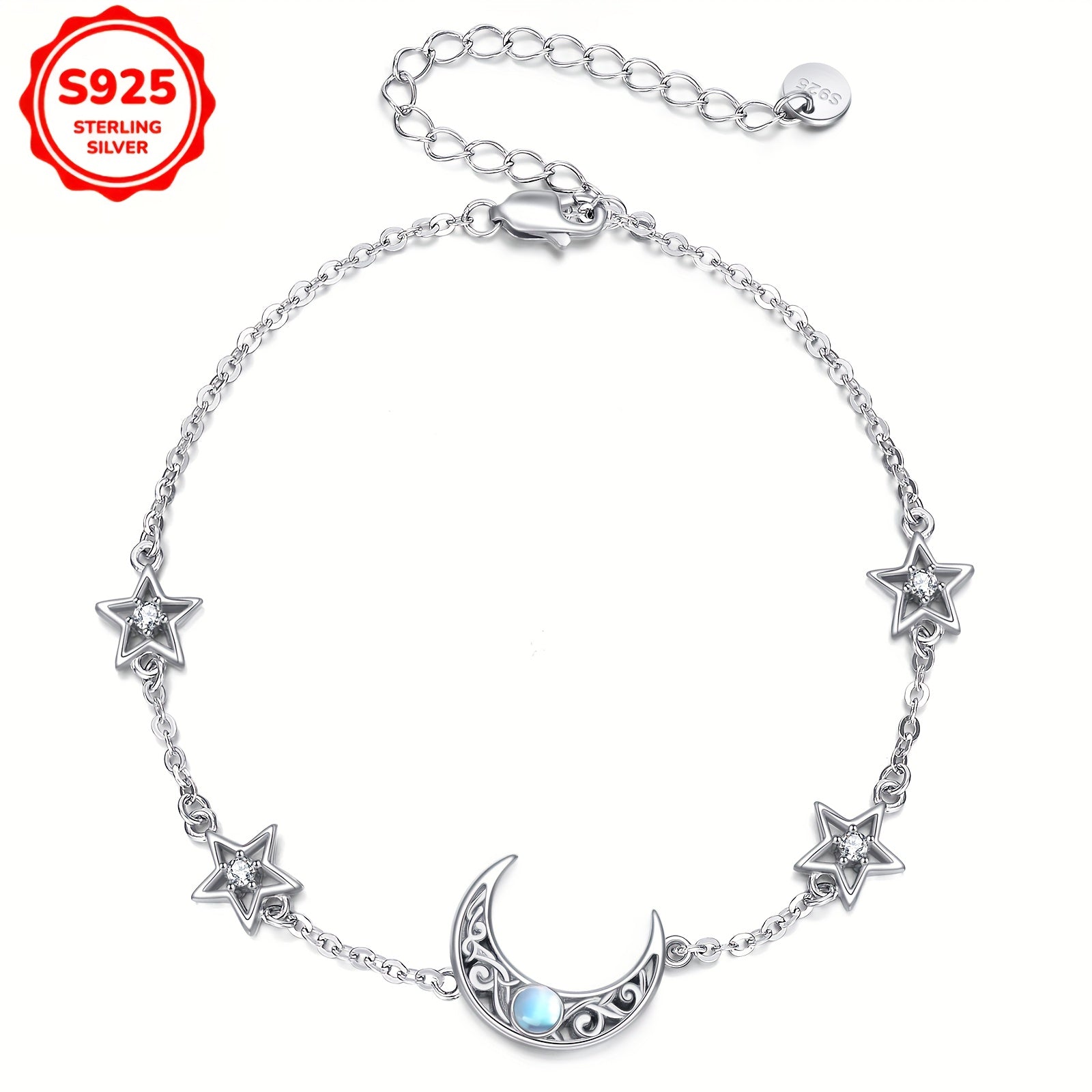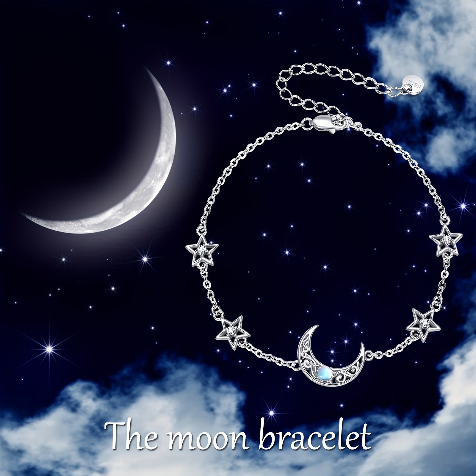 This stunning bracelet features a moonstone in a celestial design. Crafted with 925 pure silver, it adds an elegant touch to any outfit.