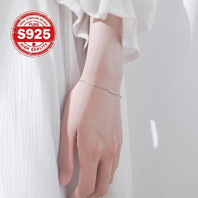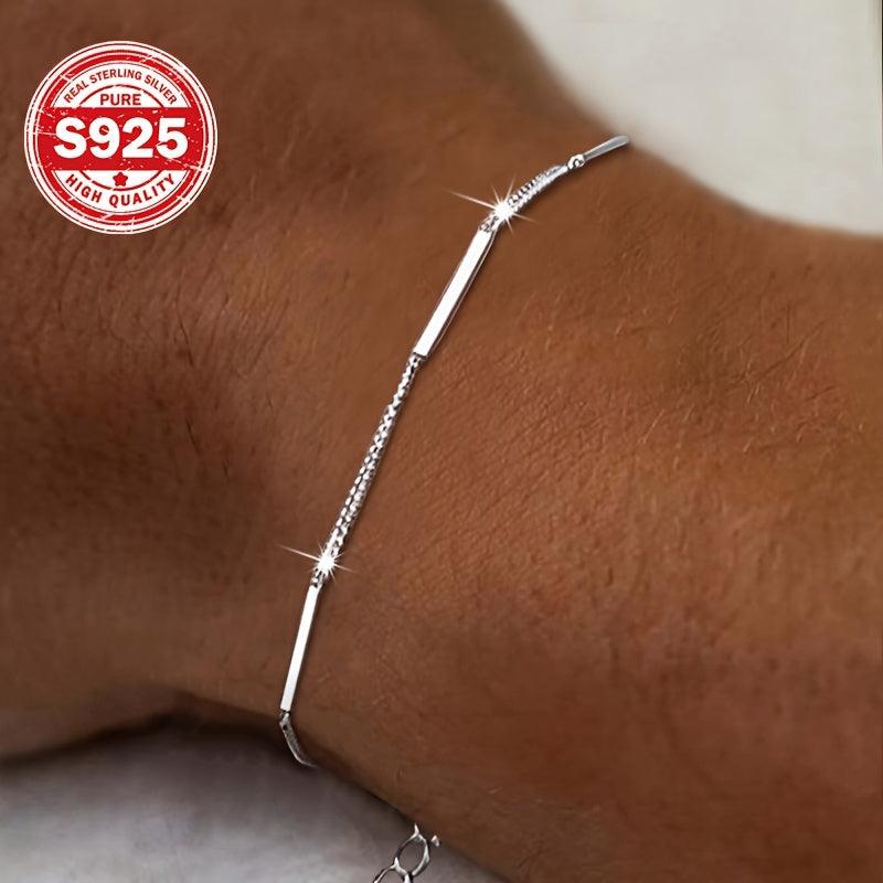 This lightweight bangle bracelet features a stylish cross link design. Made from 925 sterling silver with an 18K golden plating, it is versatile for daily wear.