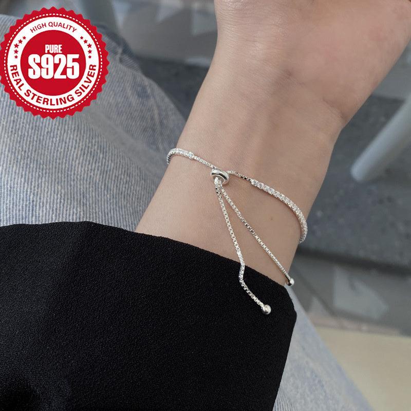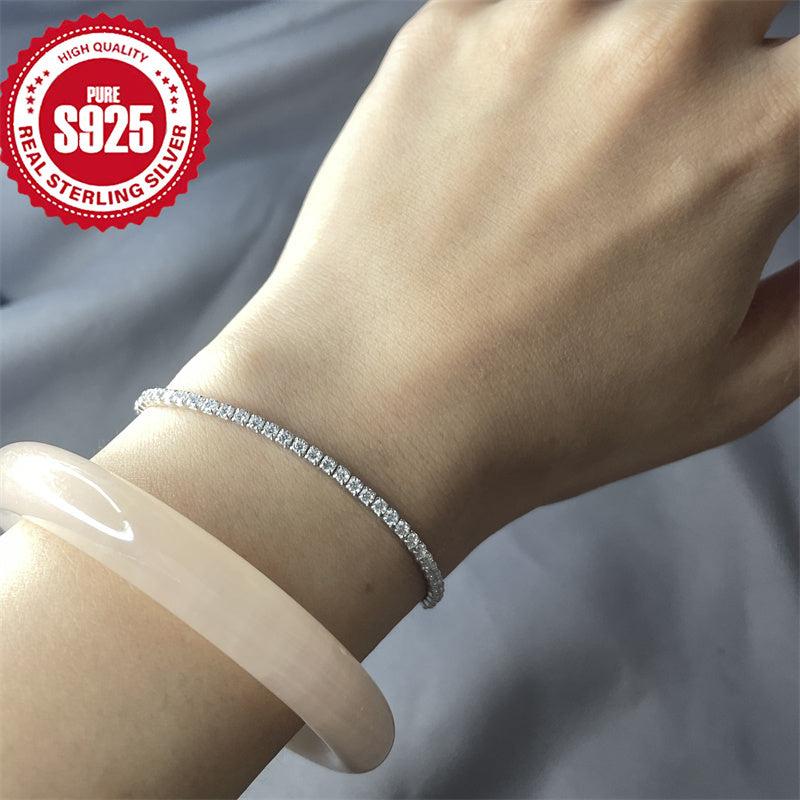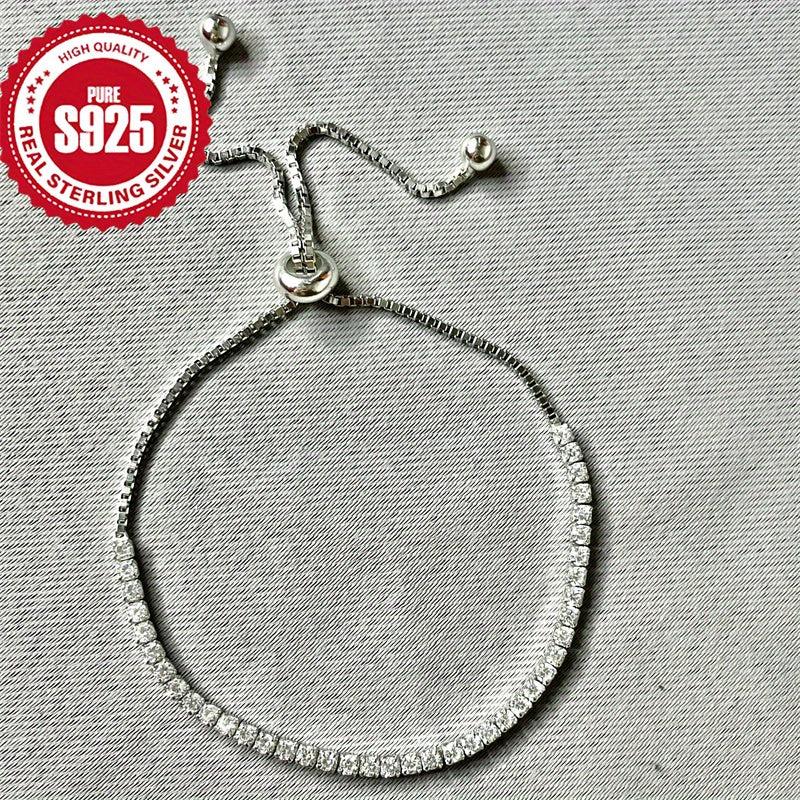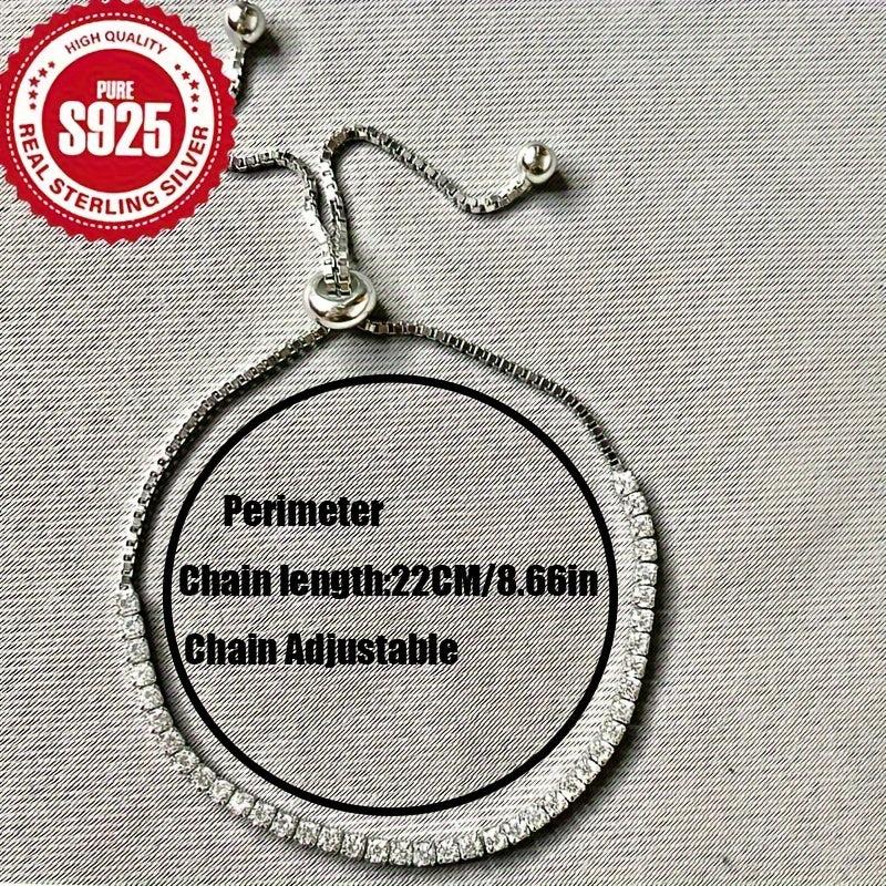 Elegant bracelet featuring shining synthetic zirconia stones on an adjustable chain. Perfect for women's engagement jewelry or gift. Weighs 2.8g.