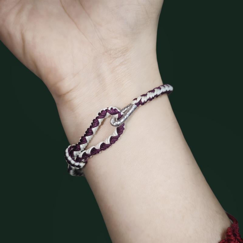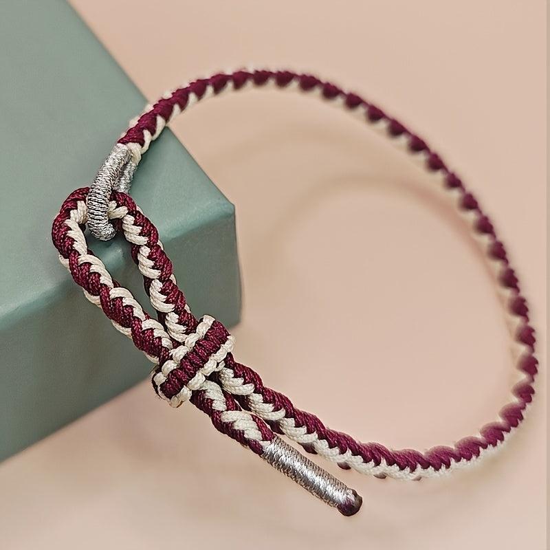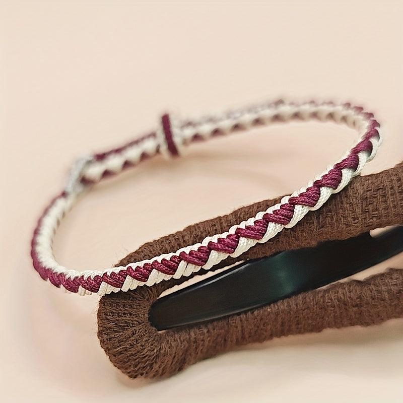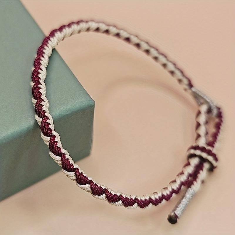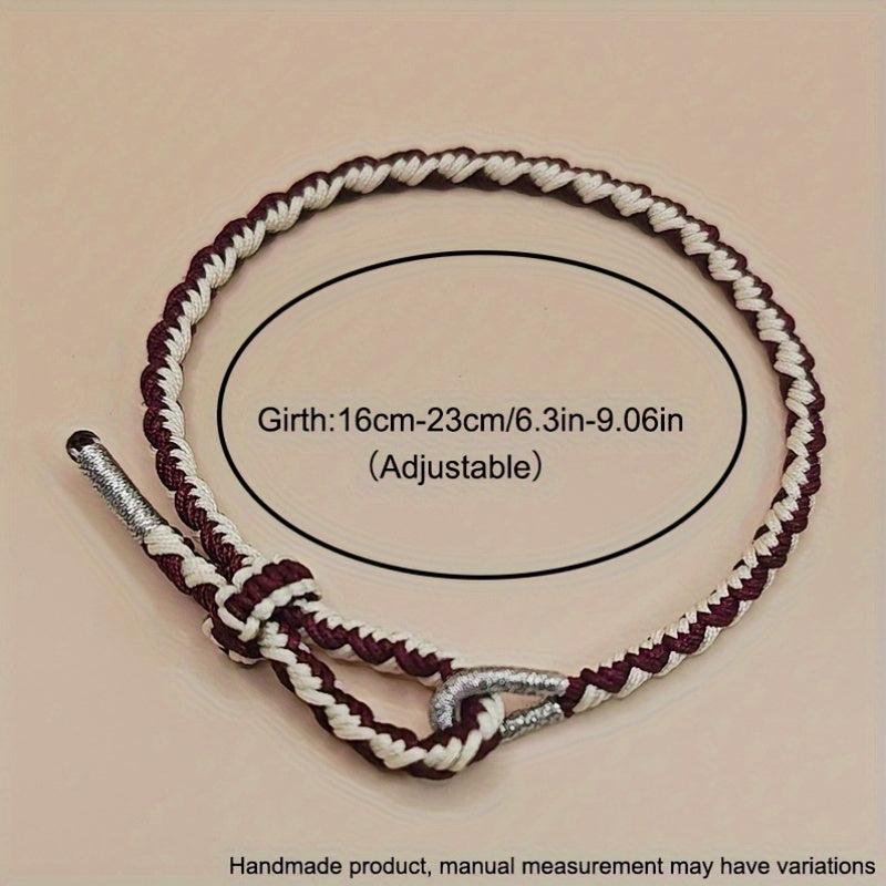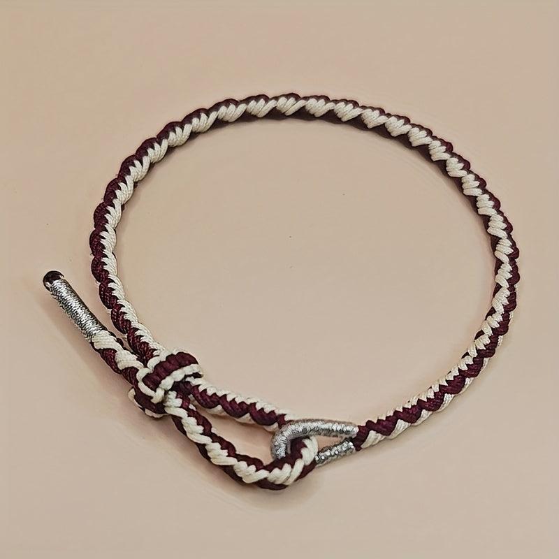 This adjustable braided bracelet features a two-tone heart design and is made of synthetic fiber rope, making it perfect for daily wear or as a Valentine's Day gift.