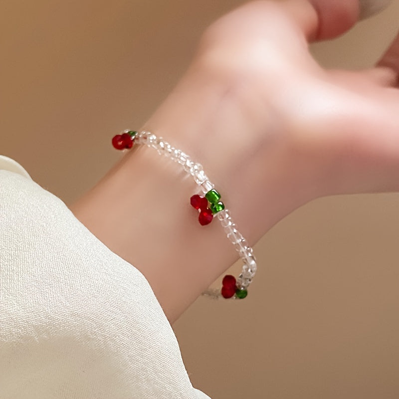 This bracelet set features vibrant cherry bead design, perfect for adding a bohemian touch to your look.