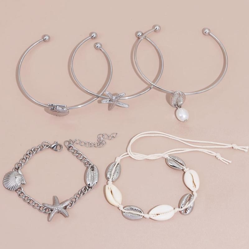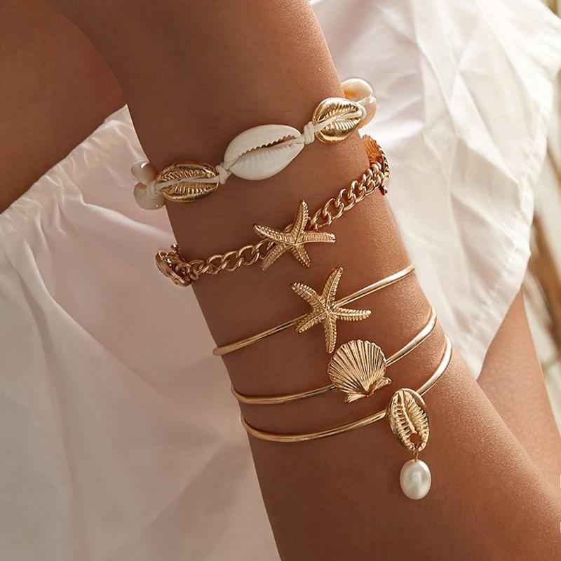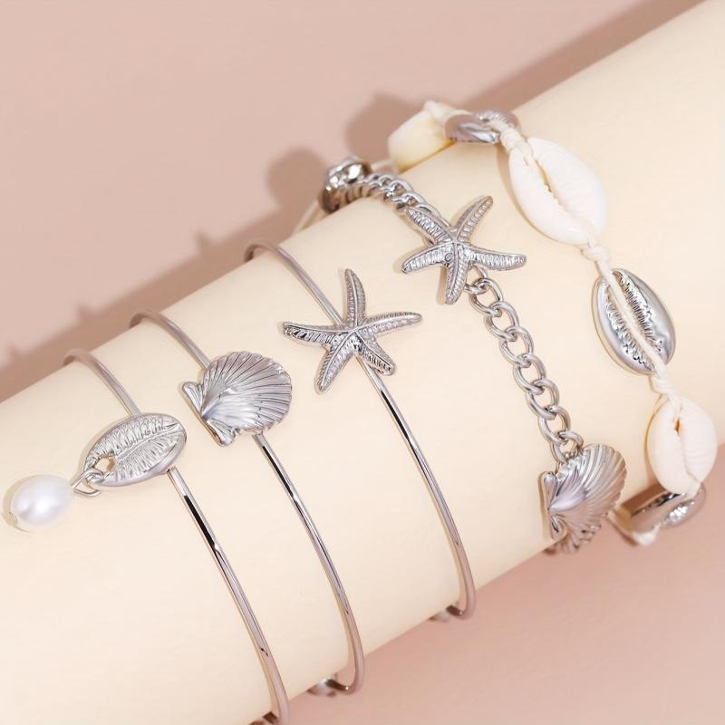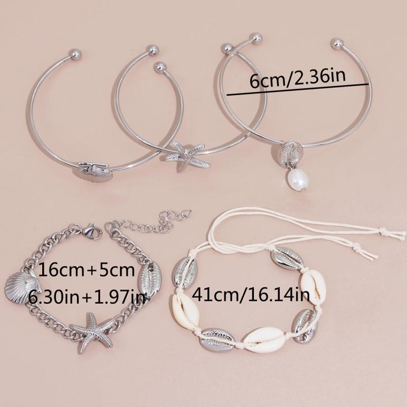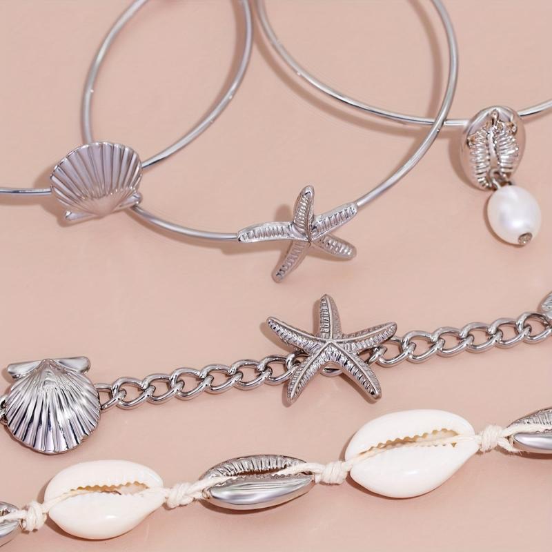 Add a touch of seaside charm to your look with this Bohemian bracelet set. Perfect for beach parties and vacations, this accessory is made of zinc alloy and can be worn in all seasons.