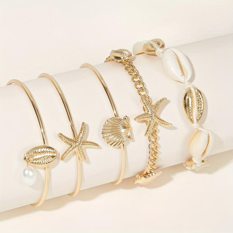 Boho Shell & Starfish Bracelet Set for Women, Beach Themed Jewelry