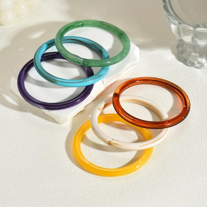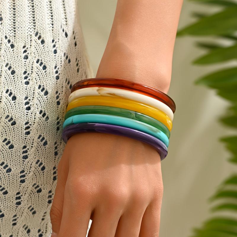 Add a touch of boho chic to your everyday and vacation outfits with this vibrant acrylic bangle bracelet. It's perfect for stacking or wearing alone to make a statement.