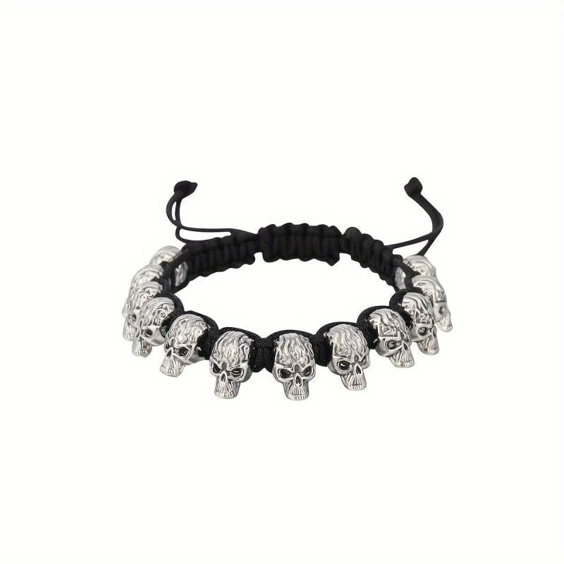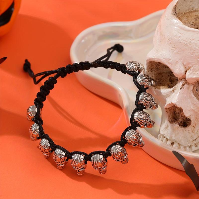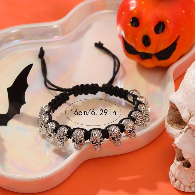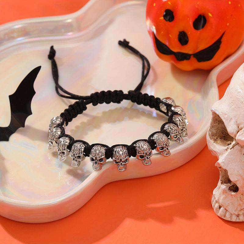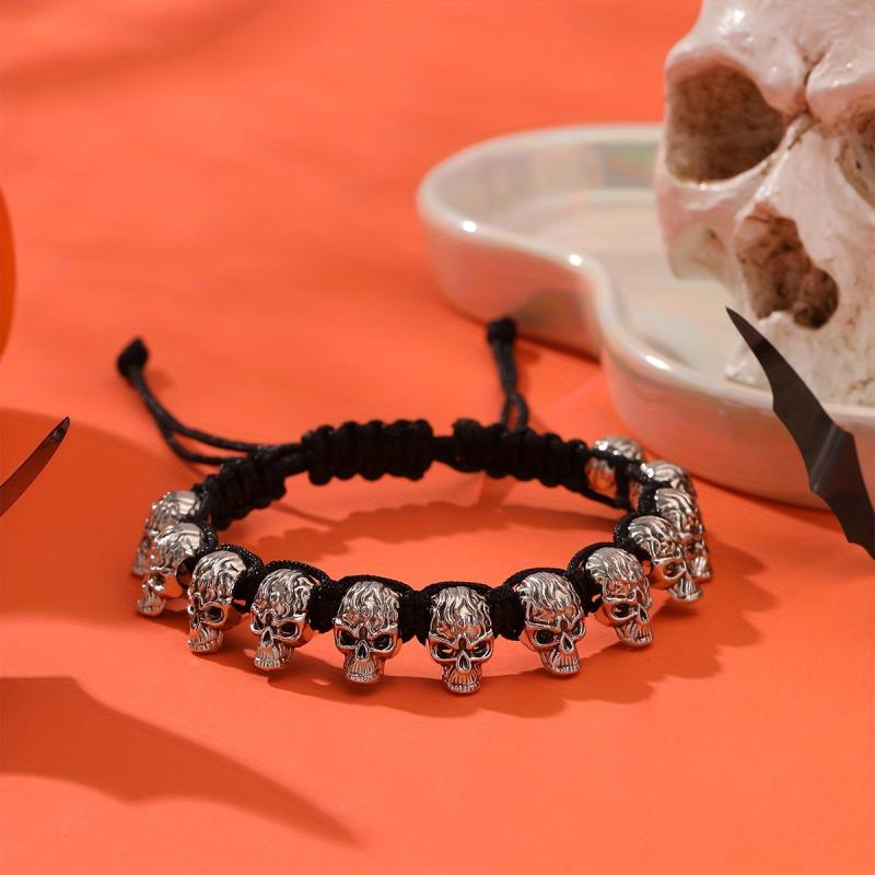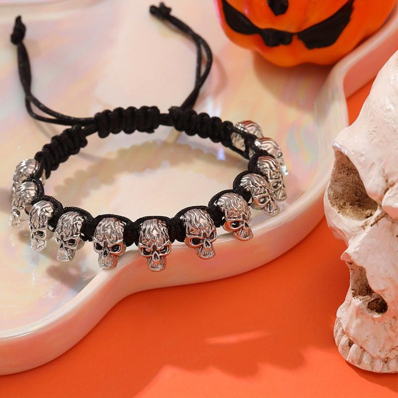 Adjustable bracelet featuring a turnable skeleton skull design, perfect for daily wear or Halloween festivities. A unique and stylish gift for anyone who loves gothic accessories.
