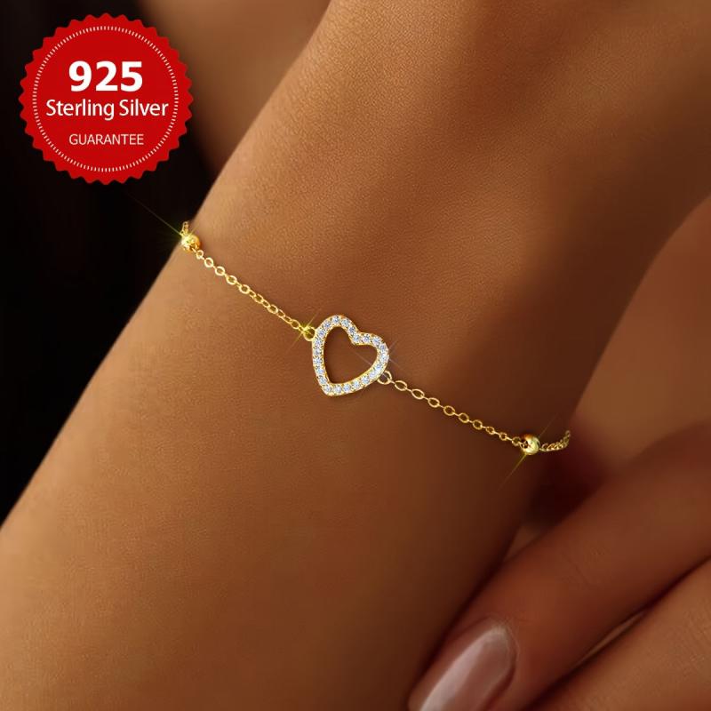 Heart Bracelet Round Bracelet s925 Sterling Silvery Golden Bracelet for Women