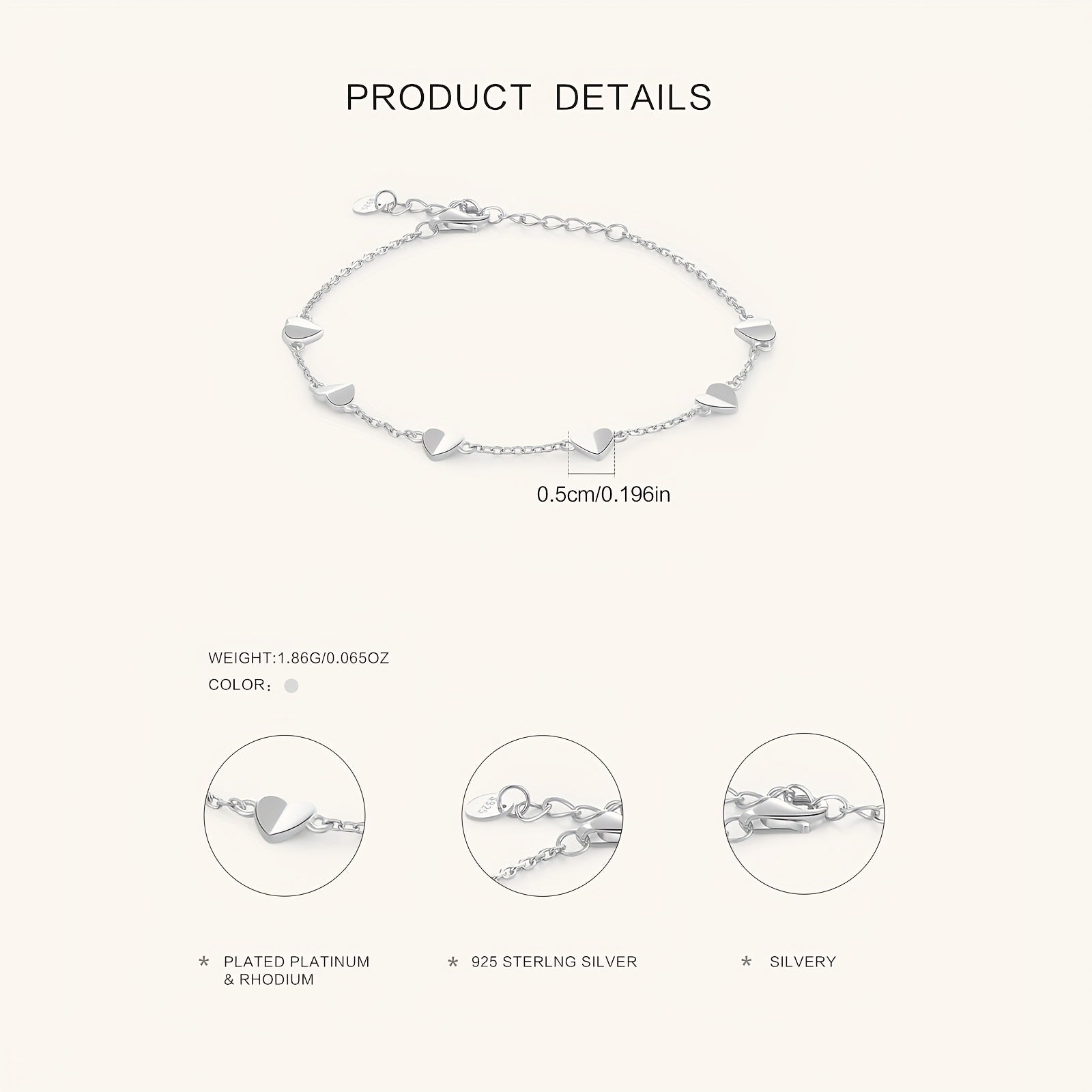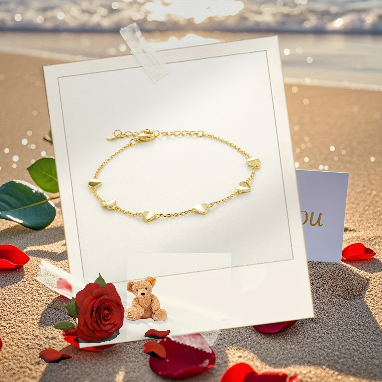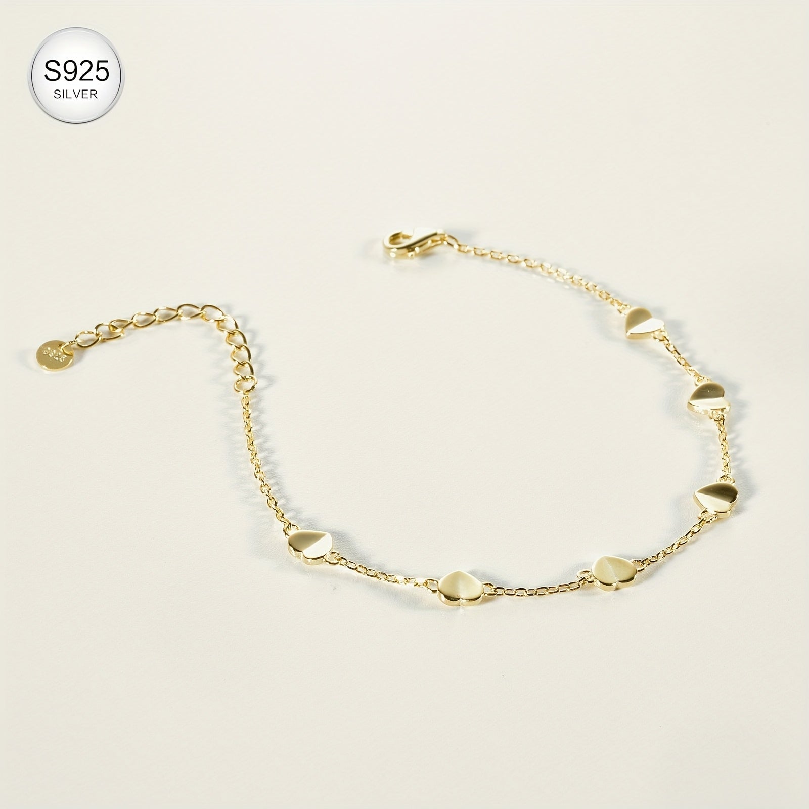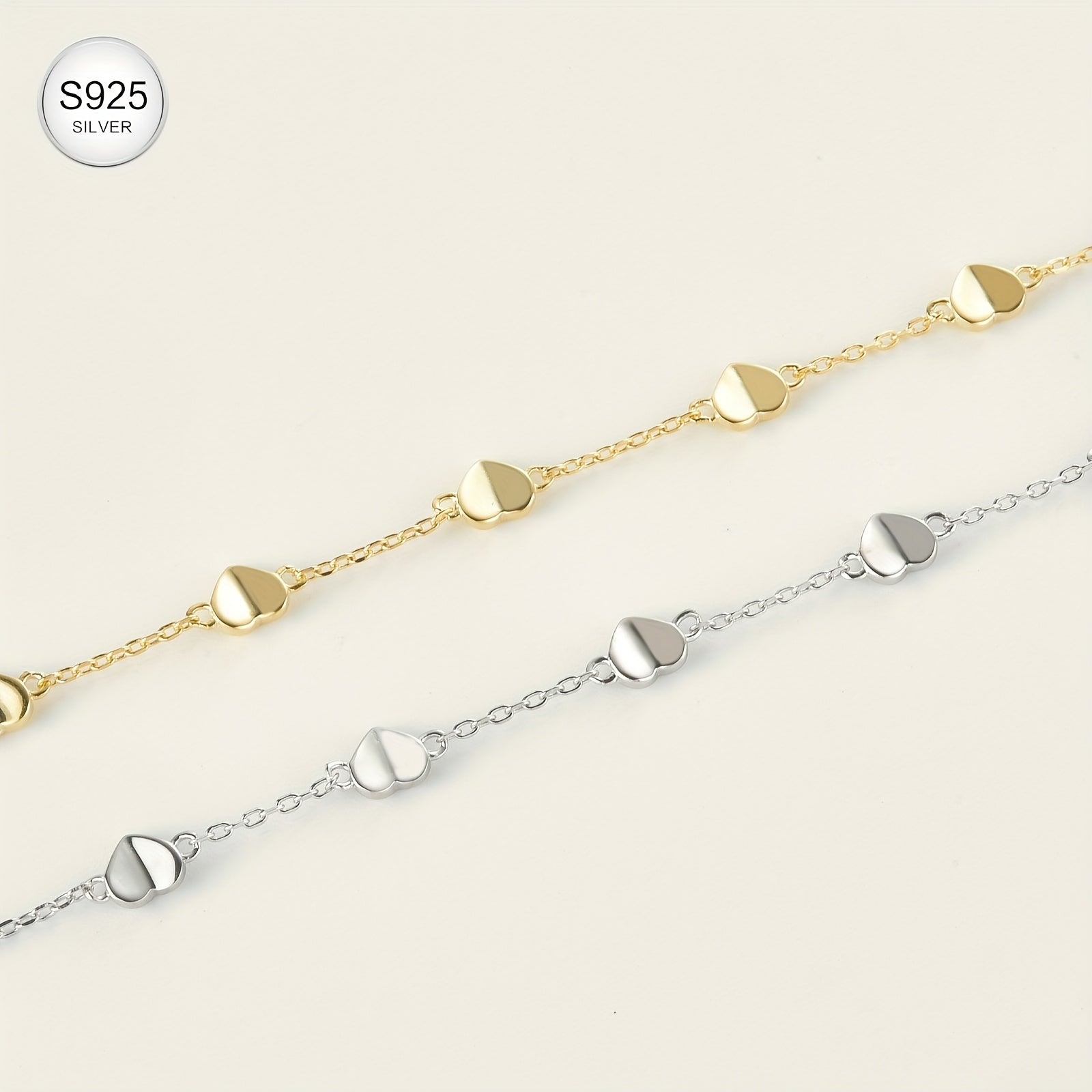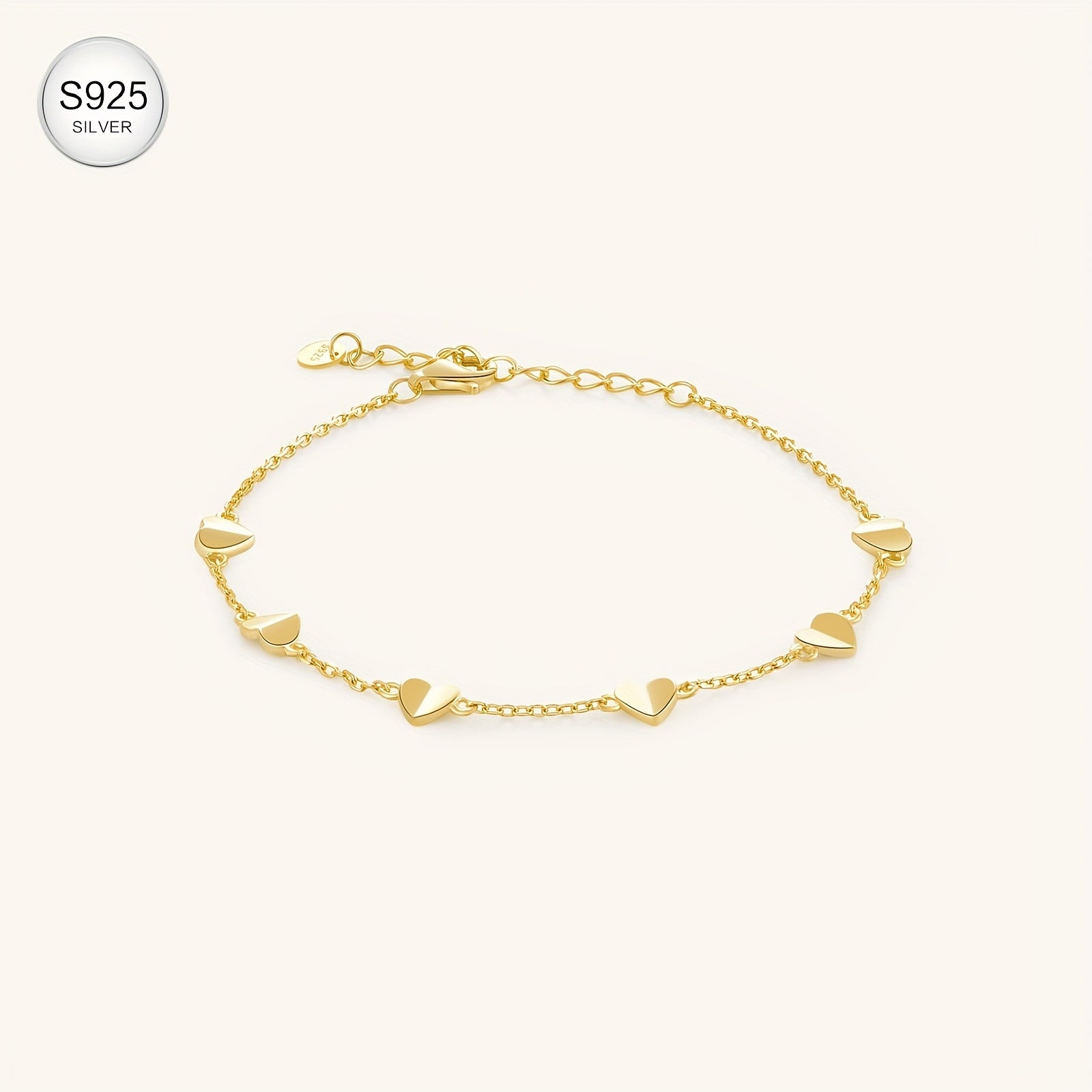 Elegant bracelet featuring heart-shaped links, made from hypoallergenic 925 sterling silver with 18k gold plating. Perfect for casual wear or special romantic occasions.