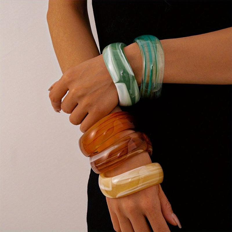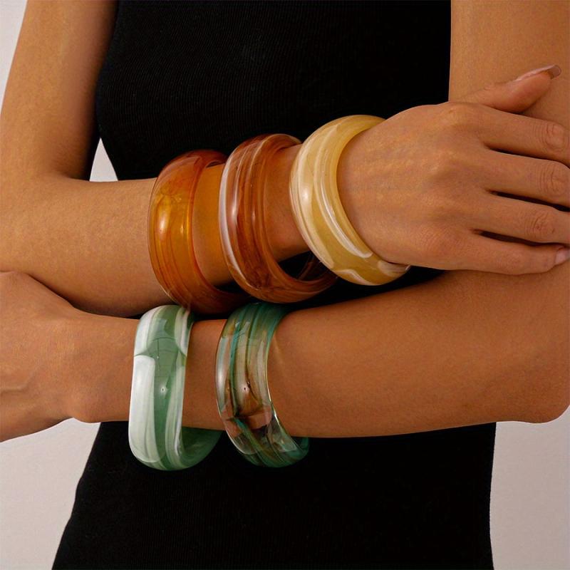 This stylish minimalist high-end wristband features an irregular resin gradient wave design. Add a touch of elegance to your look with this unique bracelet.