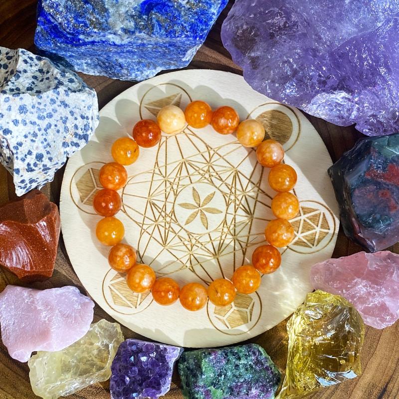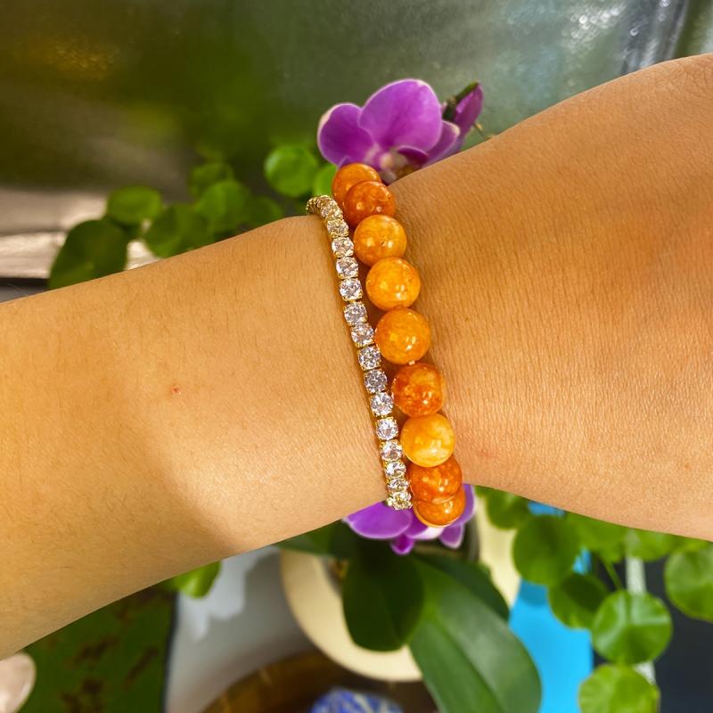 This Orange Aventurine beaded bracelet is designed to attract wealth and prosperity. It is perfect for daily wear and makes a thoughtful holiday blessing gift for family members.