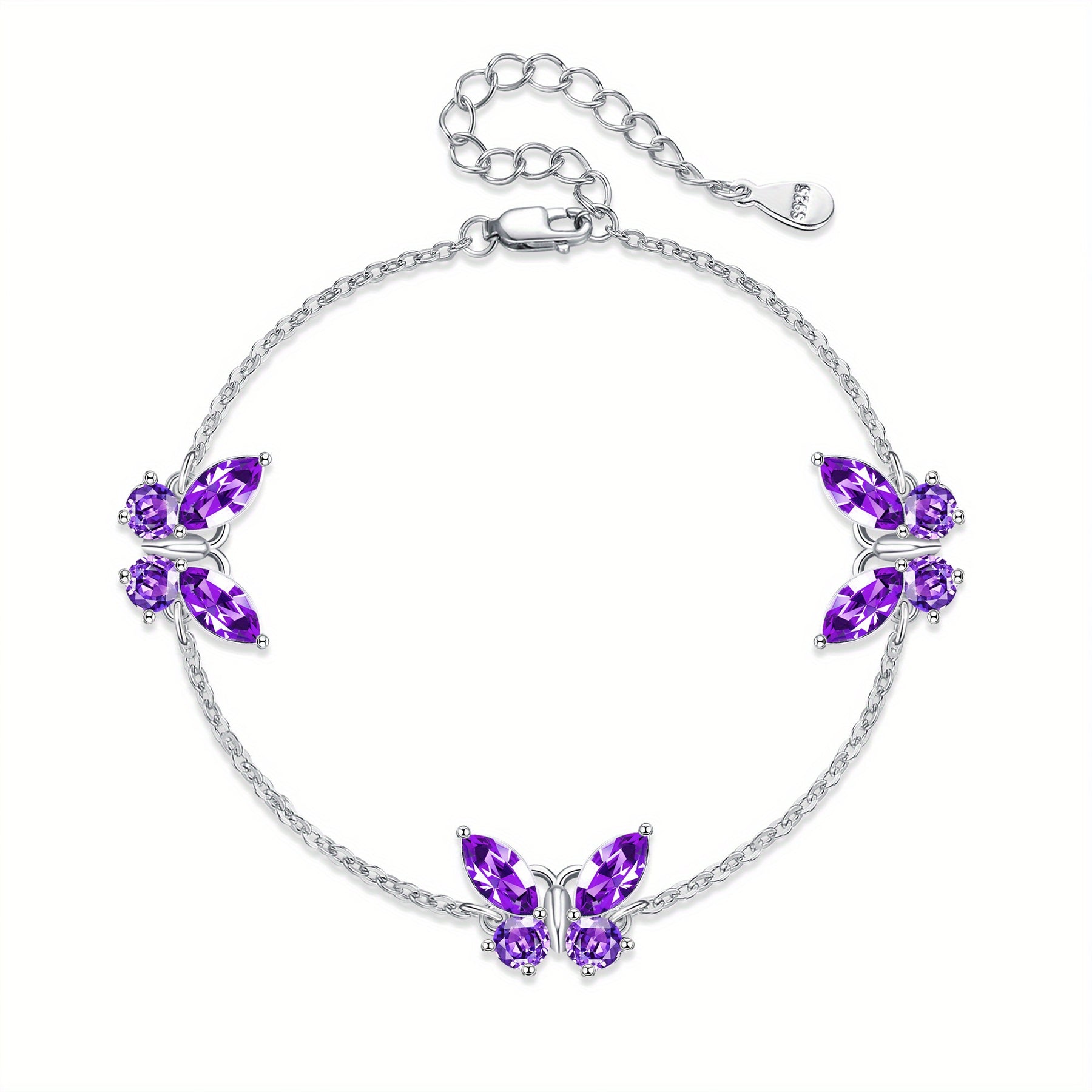This beautiful bracelet features purple and silvery butterflies, making it a perfect accessory for any outfit. It is a great gift for women who love butterfly jewelry.
