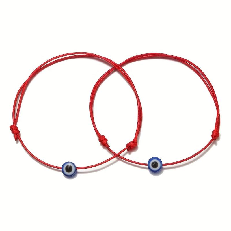Embrace a vintage vibe with these European and American cross-border colored rope bracelets. Each set includes two hand-woven bracelets featuring devil eye design. Perfect for couples or friends.