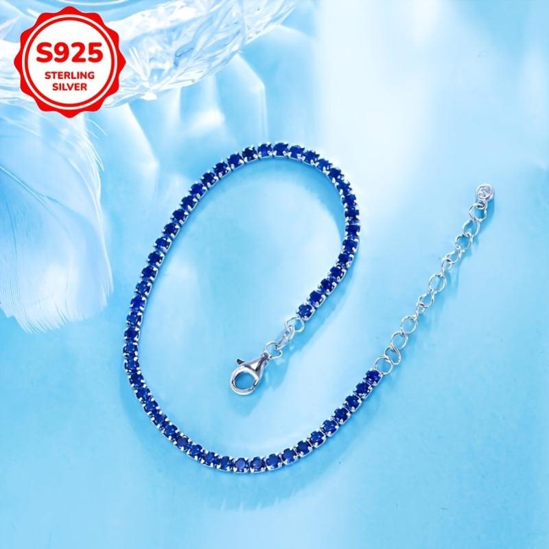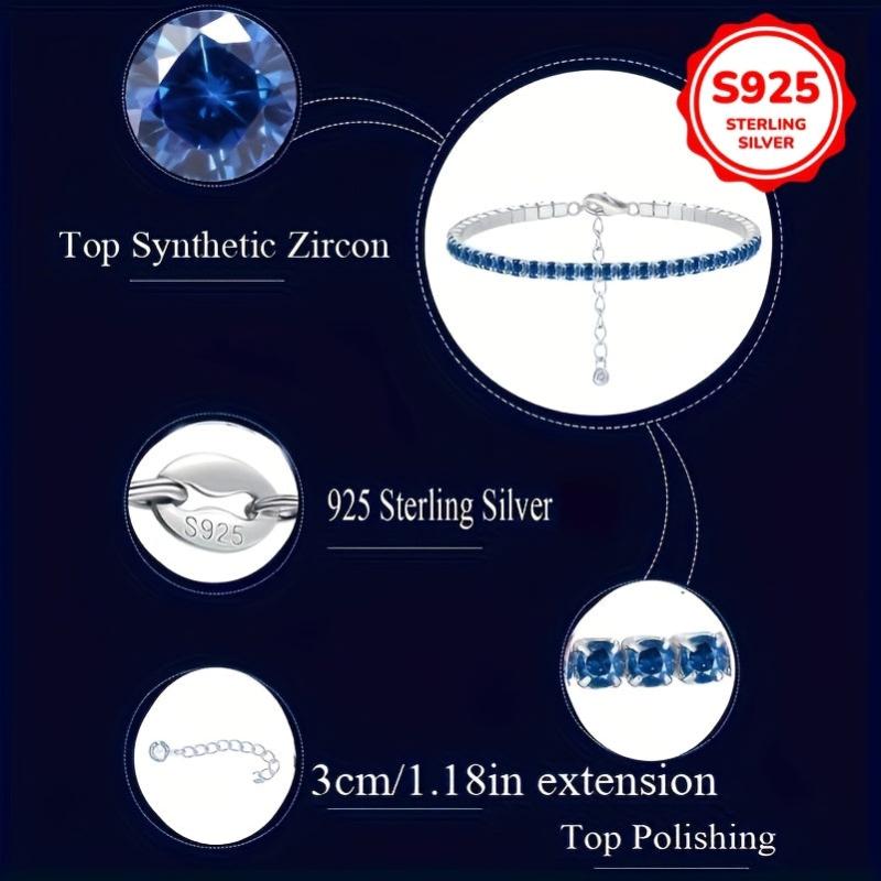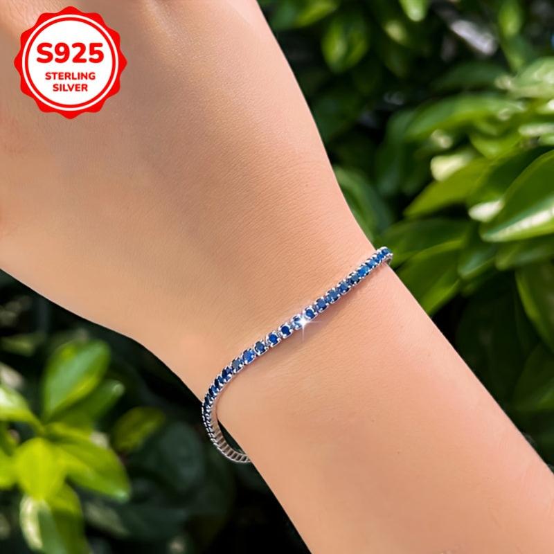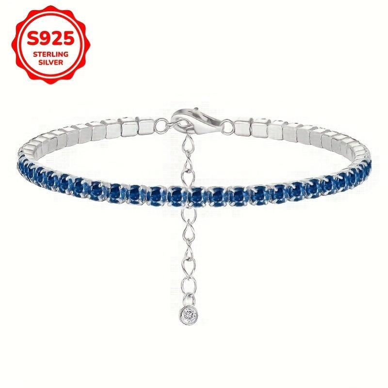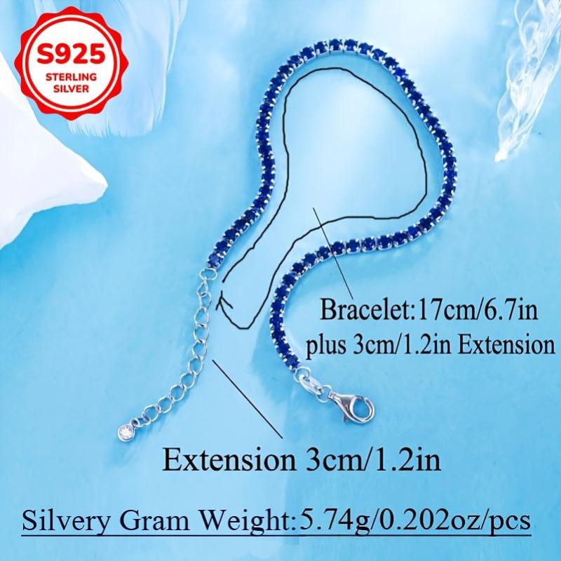 This exquisite tennis bracelet features high-end design with ice chip round synthetic zirconia inlay. Made of 925 sterling silver, it weighs 5.74g and is hypoallergenic.