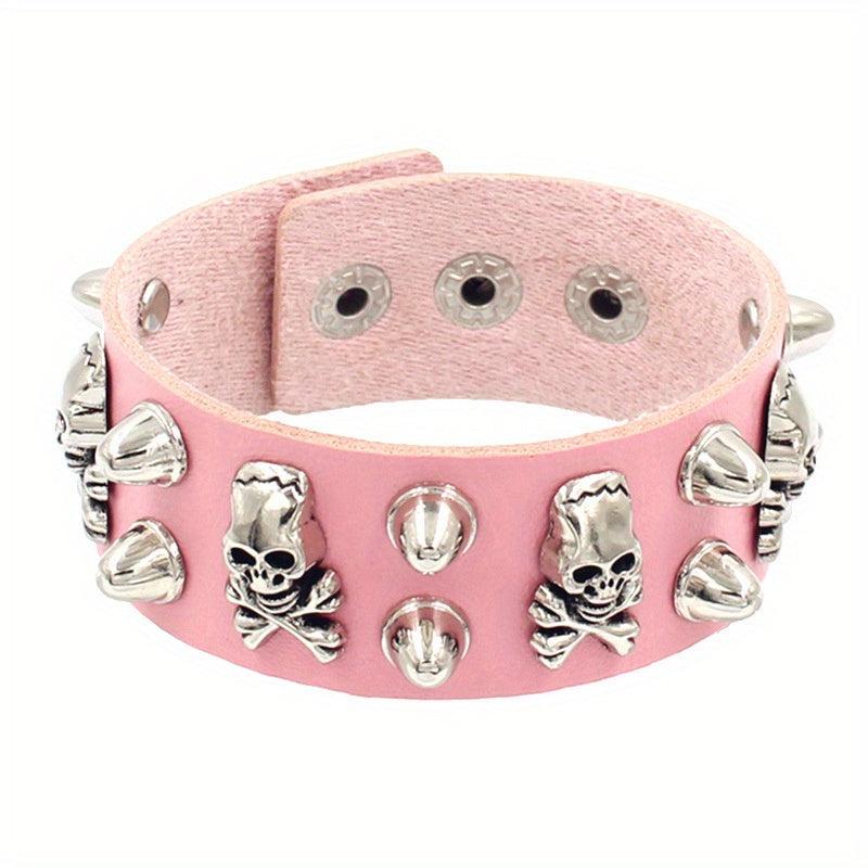 Embrace a punk style with this skull head rivet PU leather bracelet, a unique and edgy hand jewelry decoration suitable for all genders.