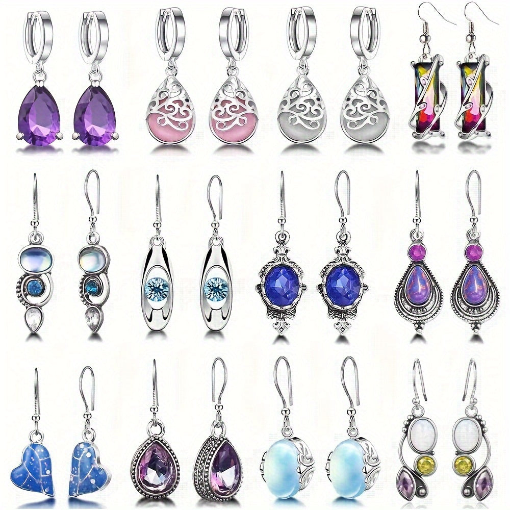 Enhance your look with this set of 12 pairs of colorful artificial crystal dangle earrings. Made from zinc alloy, these Bohemian-style earrings are delicate and make a perfect gift for any female.