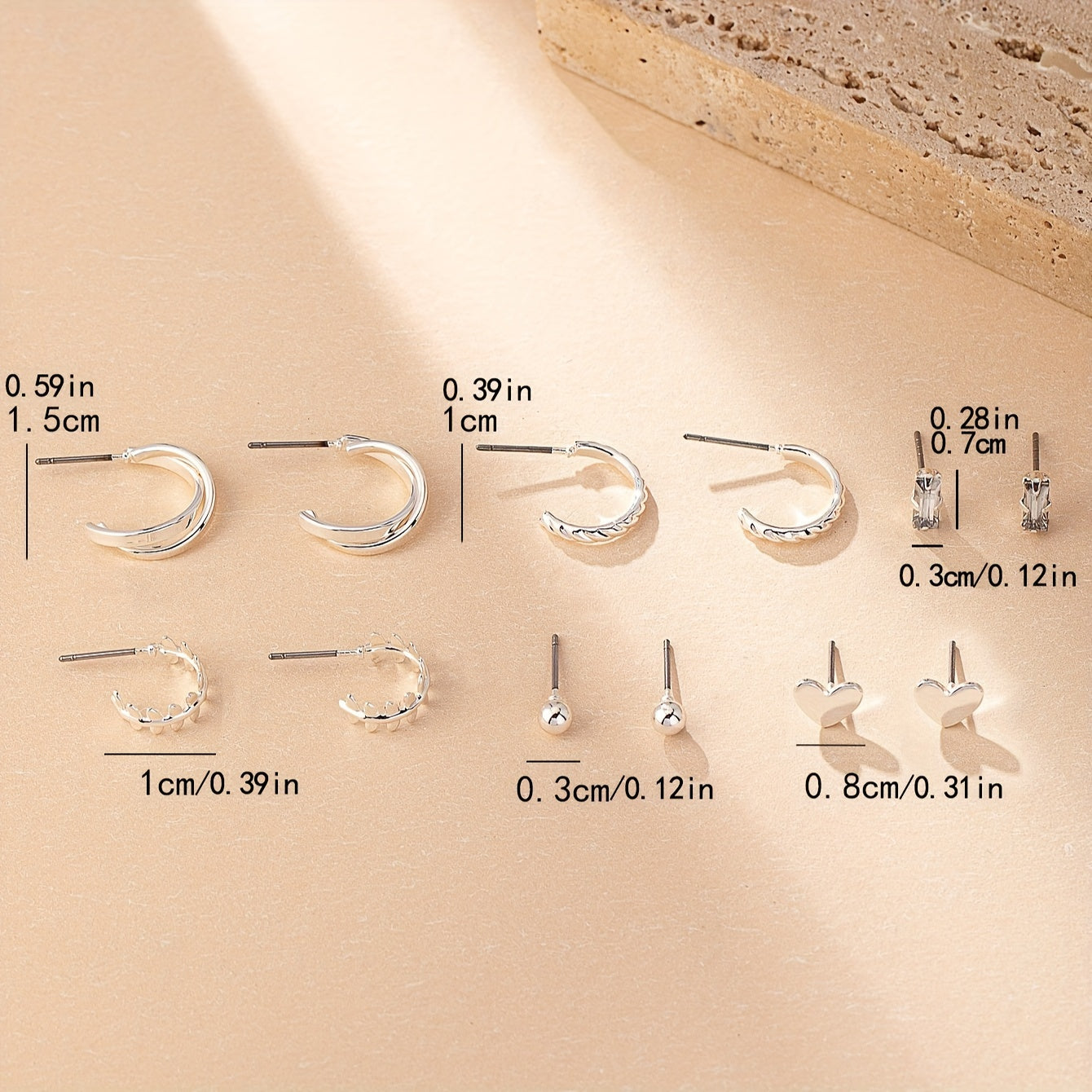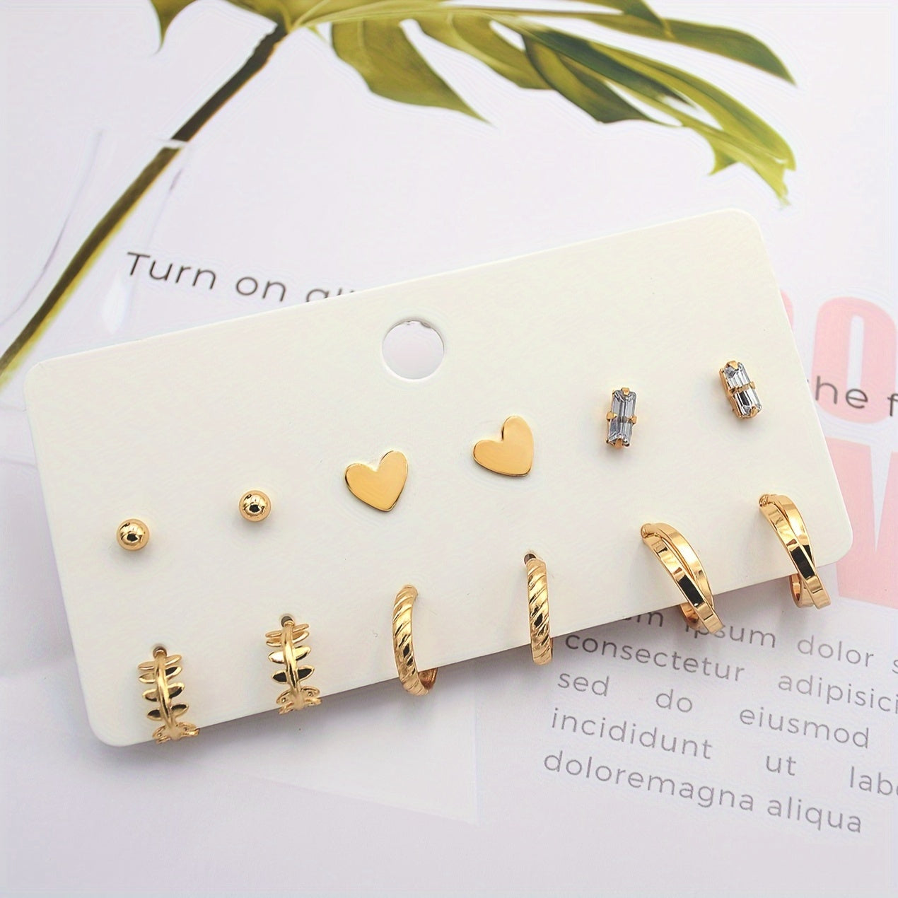 Add a touch of glamour to your look with these stylish stud earrings. Each pair features a different heart or symbol design, all plated in luxurious 18K gold. Perfect for everyday wear or special occasions.